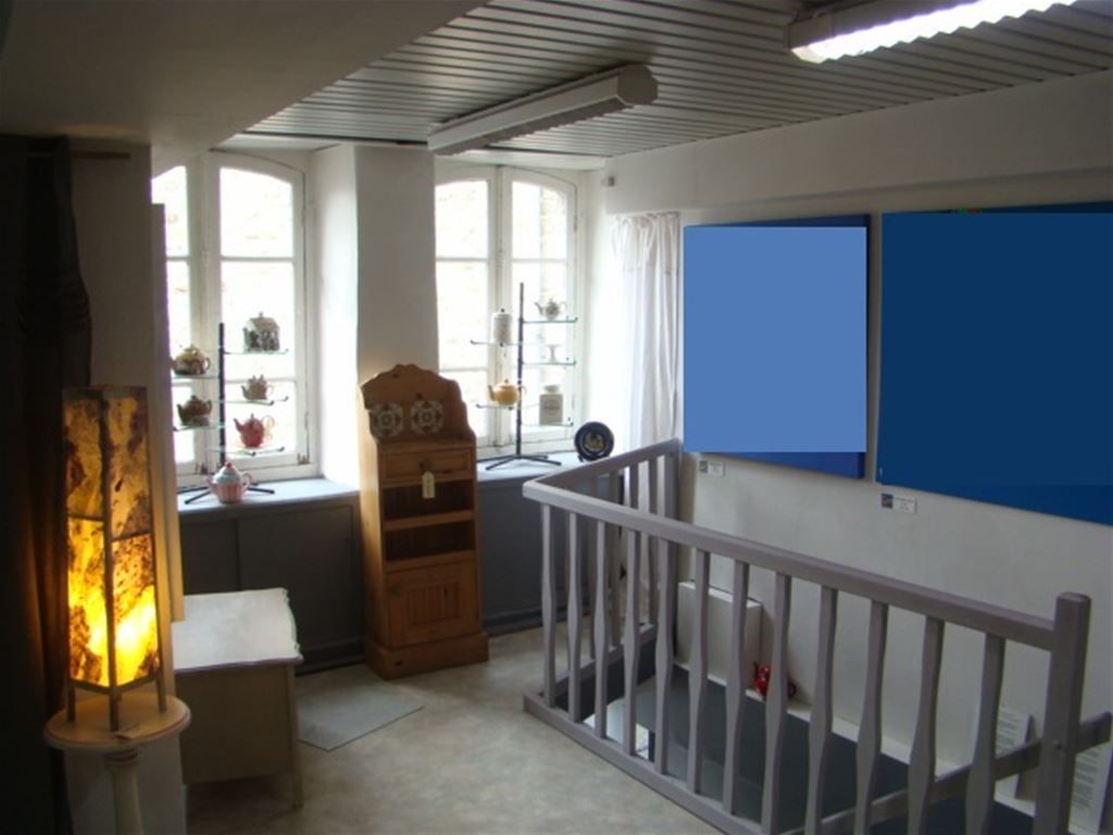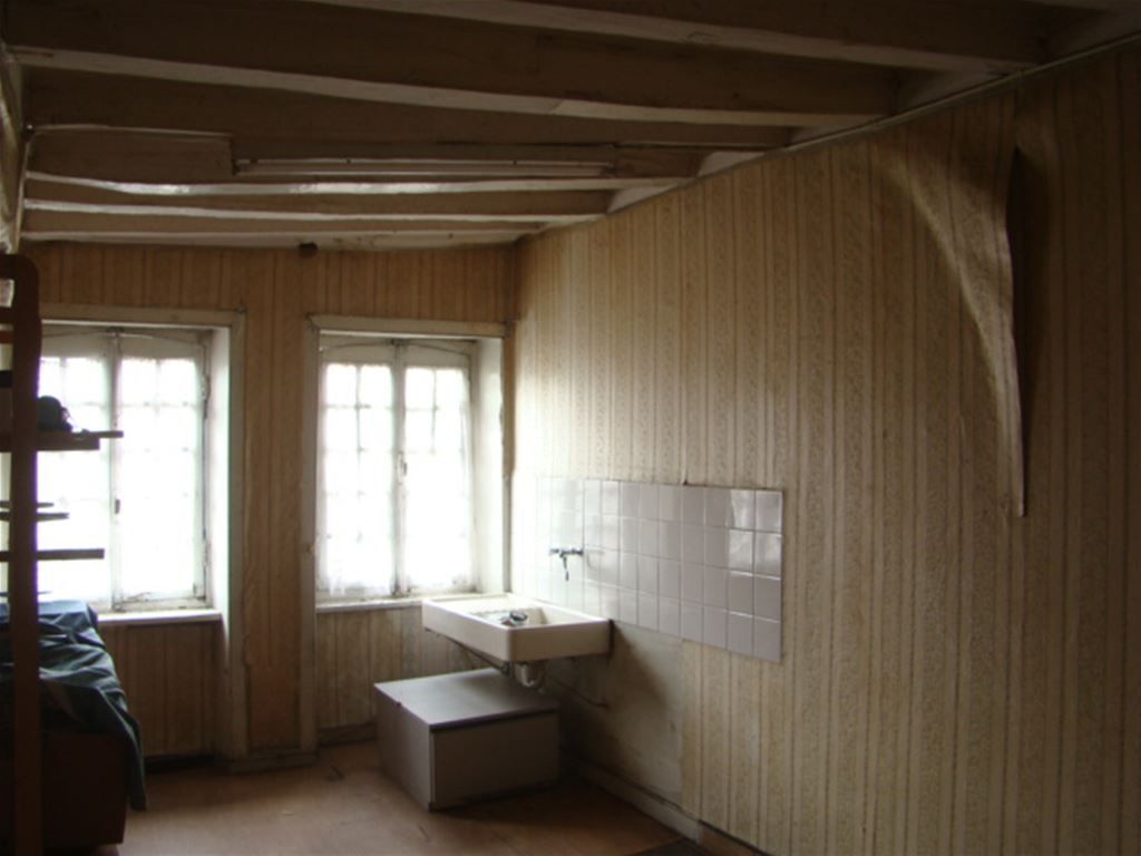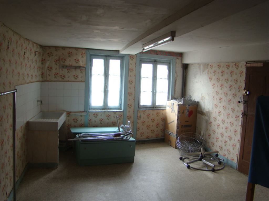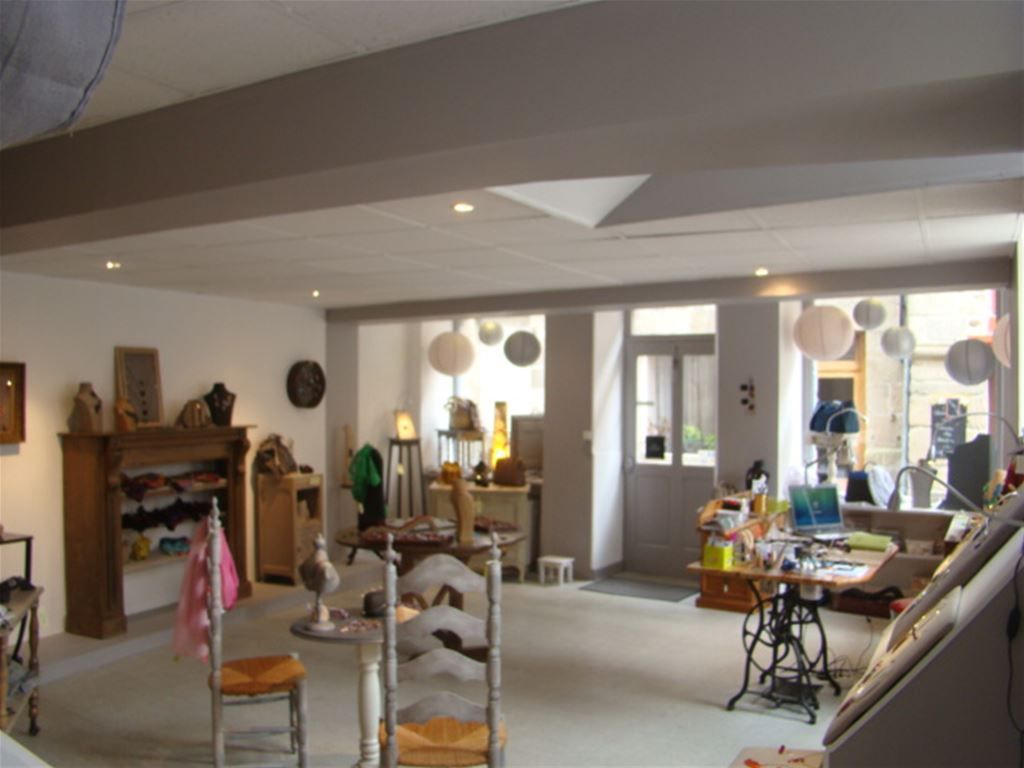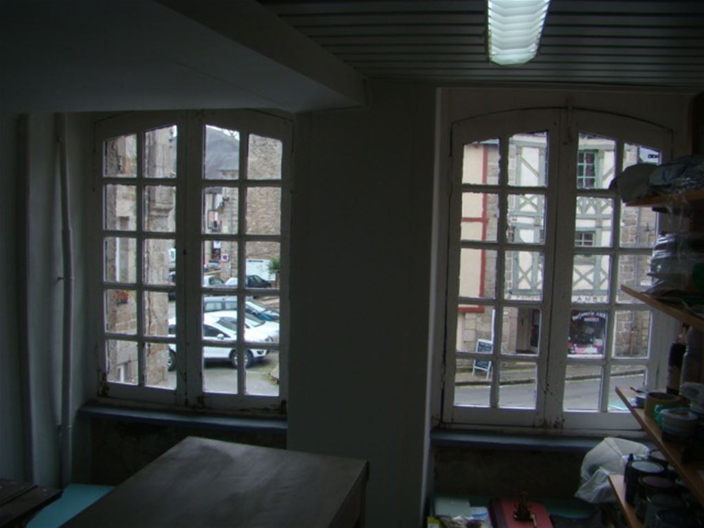 Emplacement N°1 pour commerce, Maison du Moyen Age, 120 m2 sur 3 niveaux + Cave et Grenier, sans jardin - RdC 40 m2 avec vitrines - 1er Étage: pièce de 33 m2 en angle, WC avec lavabo - 2ème Étage à rénover: Palier, Chambre, WC, Pièce de vie, débarras - 3ème Étage: Grenier - relié tout à l'égout .