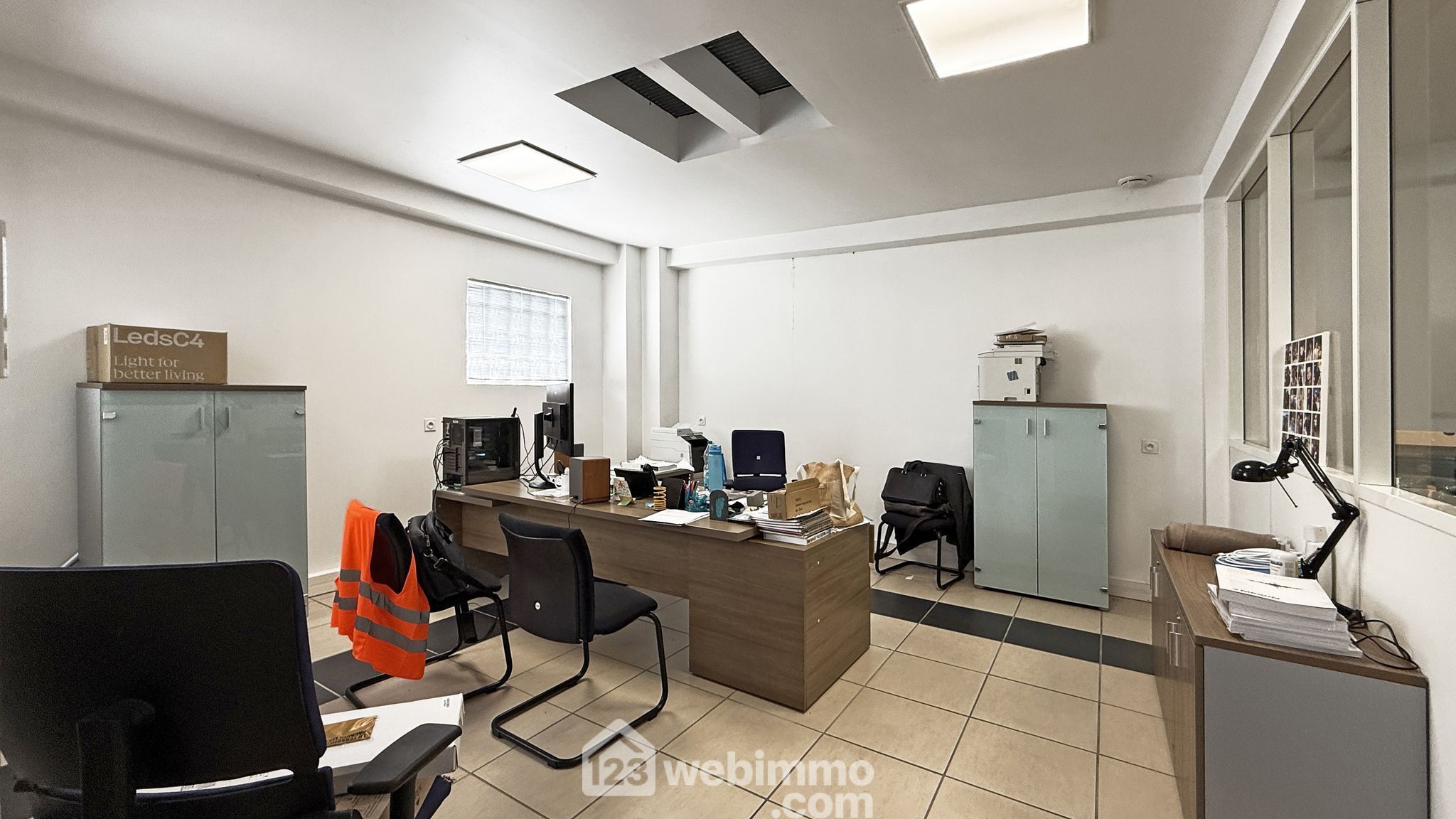 Au calme, dans un quartier pavillonnaire, ce local comprend actuellement trois bureaux, un atelier, une cuisine ouverte sur un espace à vivre ou d'activité de 140 m2, une mezzanine de 90 m2, une salle d'eau, 2 wc et un garage 2 places (voire plus selon aménagement).