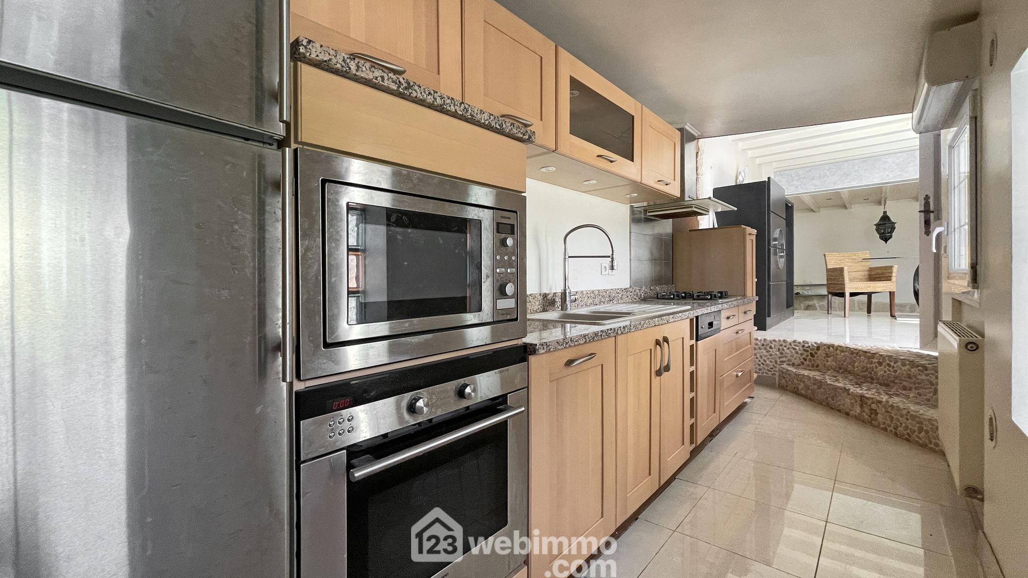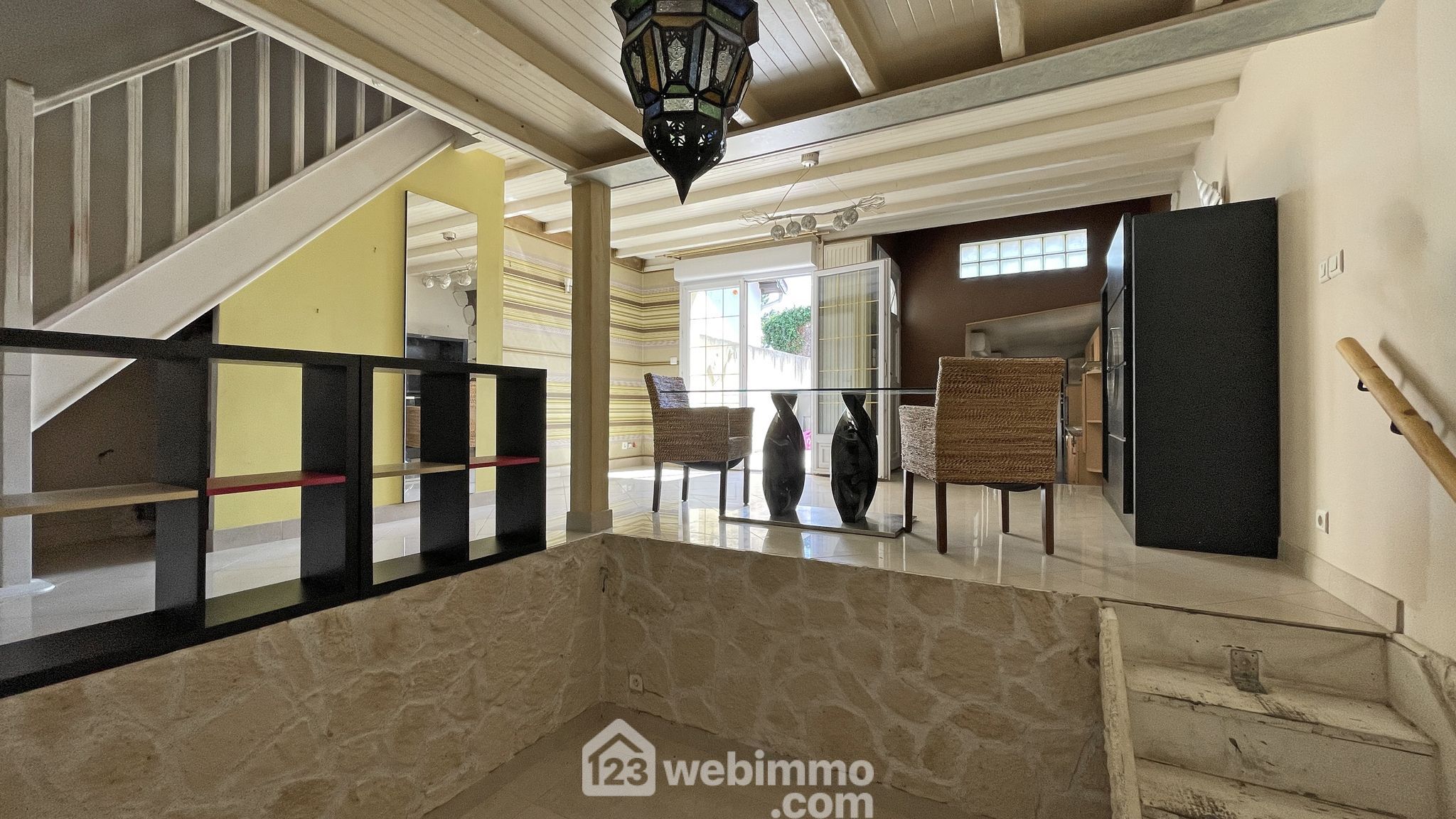 Au calme, cette maison de ville construite en 2004, d'une surface utile de 67m2 vous offre en rez-de-chaussée un séjour de 30m2 ouvrant sur une terrasse Sud de 20m2, une cuisine ouverte prolongée d'une buanderie et un wc séparé. À l'étage, sous combles, une surface au sol de 26m2 composée d'une chambre et d'une salle d'eau avec wc. Fenêtres PVC double-vitrage avec volets roulantes électriques, chauffage gaz. Quelques travaux intérieurs à prévoir. Marché et commerces à 300m, RER A et future ligne 15 du Grand Paris Express accessibles en 10min.