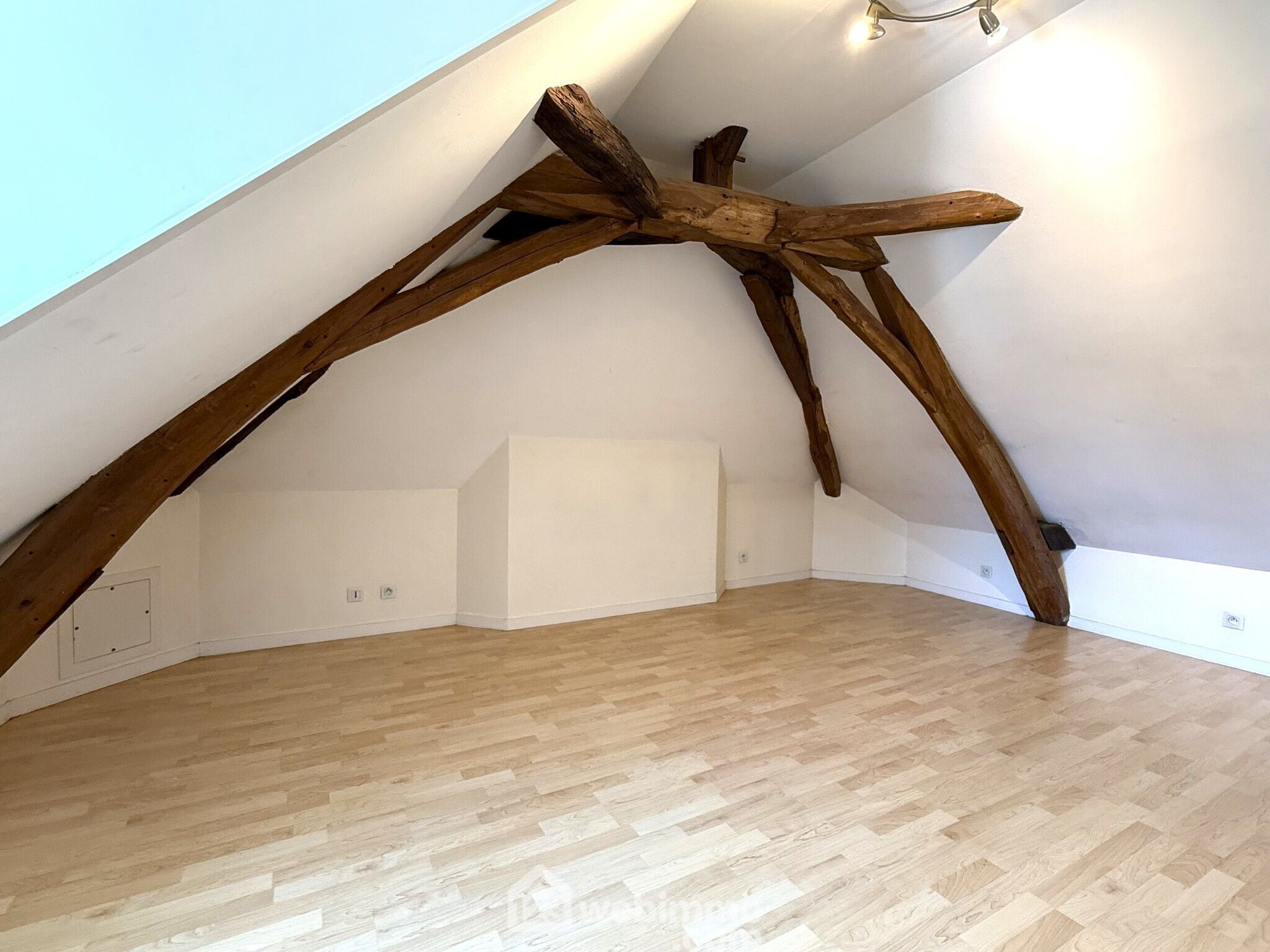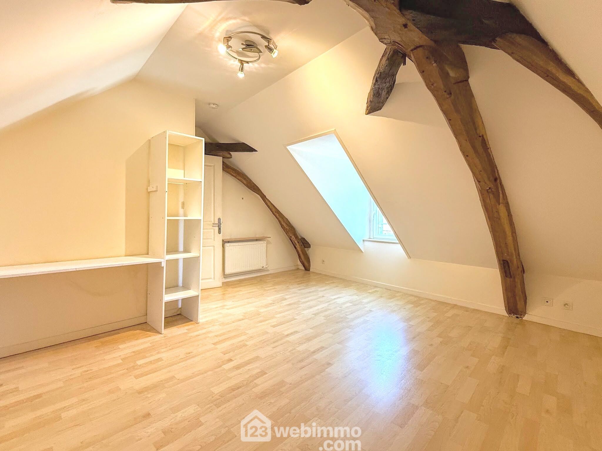 Le deuxième étage offre une grande chambre, idéale pour une chambre parentale ou un espace bureau.
