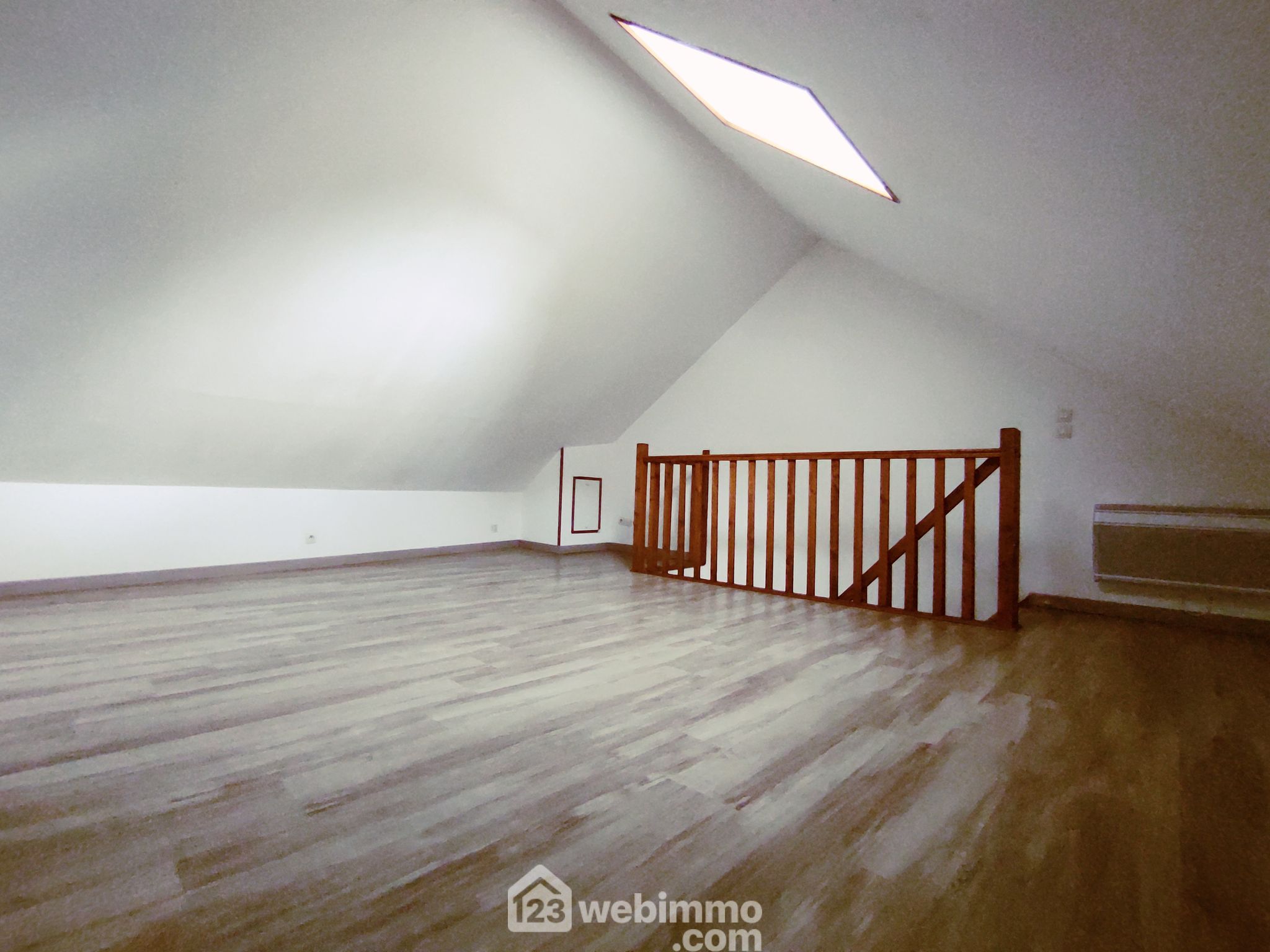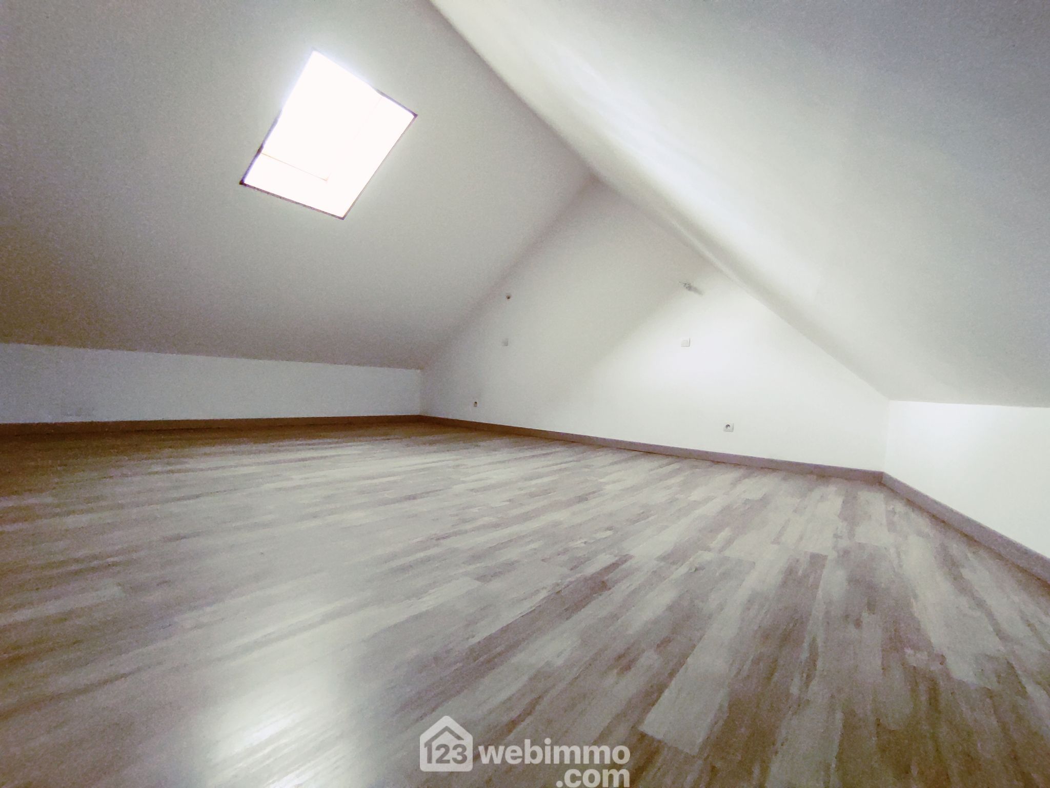 Au deuxième étage, une grande chambre parentale sous combles (11 m² loi carrez-23 m² au sol).