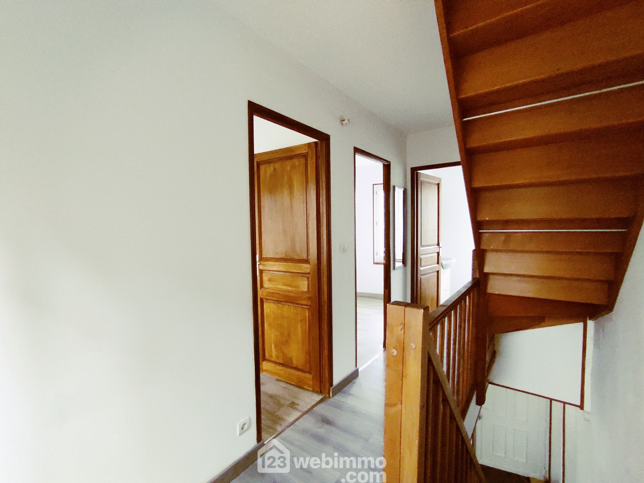 À l'étage, le palier dessert deux chambres de 9 m² chacune et une salle d'eau avec WC.