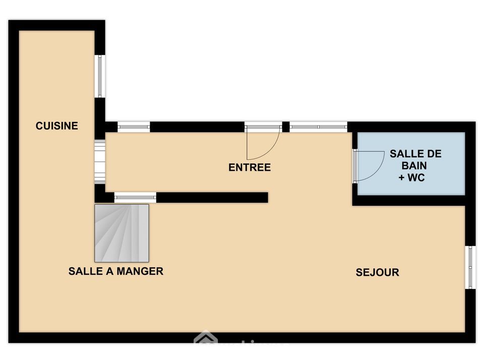 Au rez-de-chaussée : entrée, cuisine aménagée et équipée, salon / séjour, une salle de bains / WC et un accès à la cave voutée.