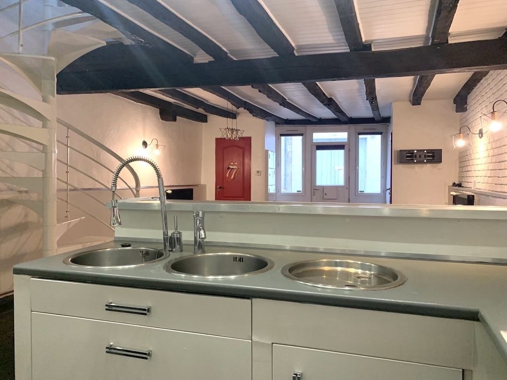 Maison de ville rénovée, 84 m2 habitables sans terrain, 3 pièces, 2 chambres. 7 minutes de la place du marché et 10 minutes de la gare.