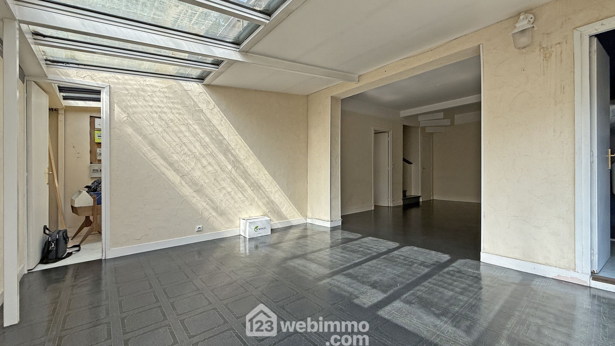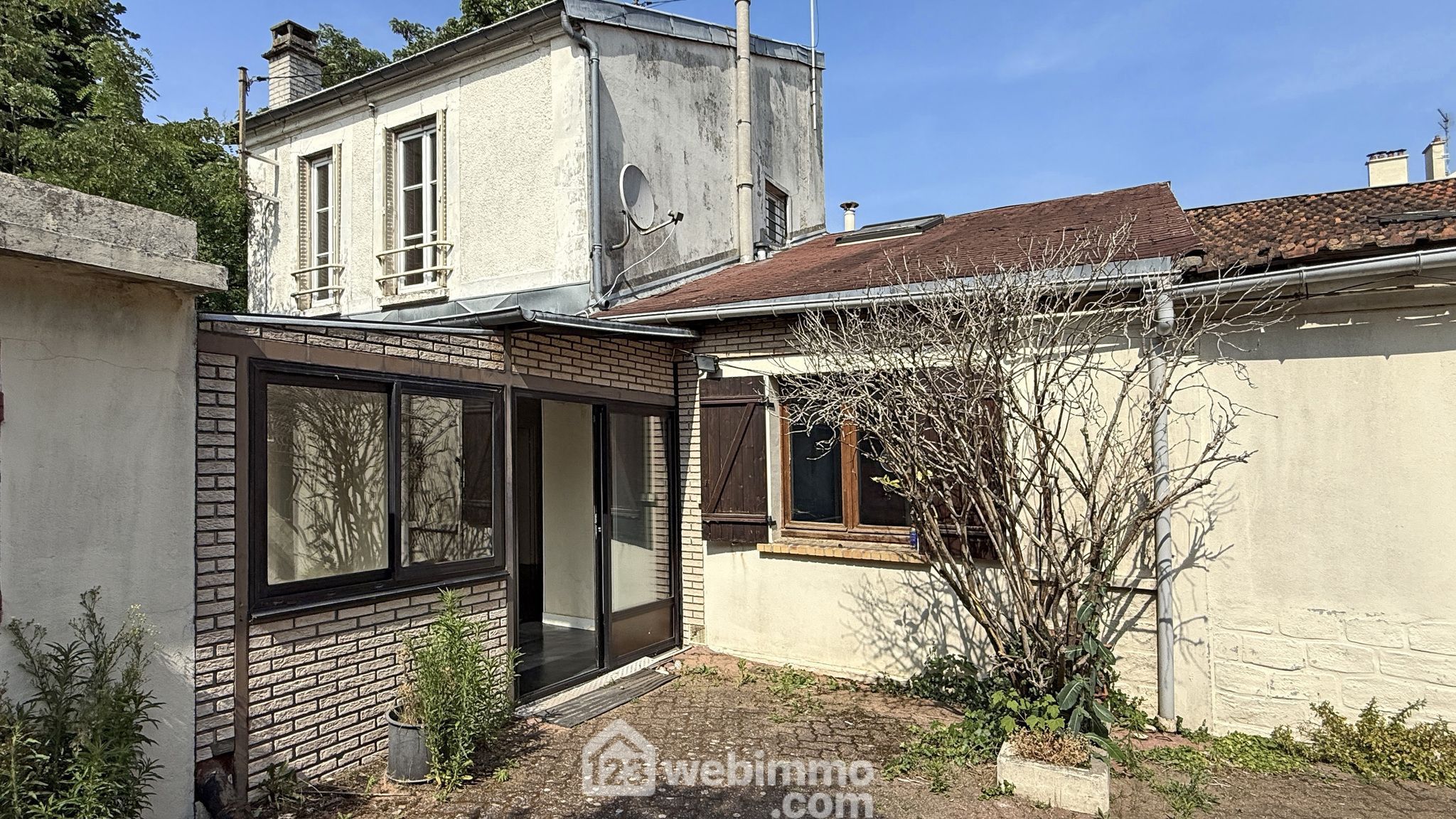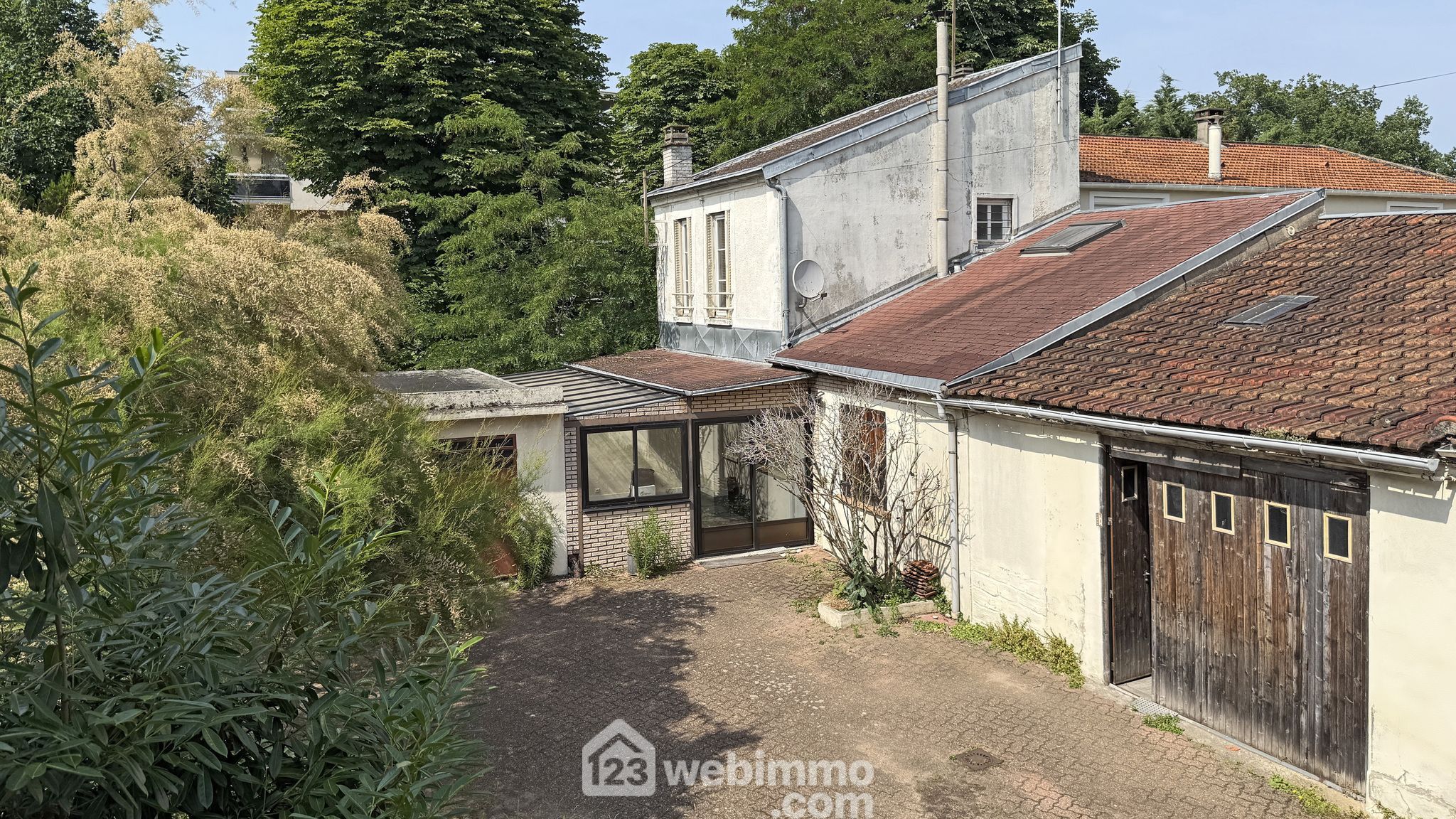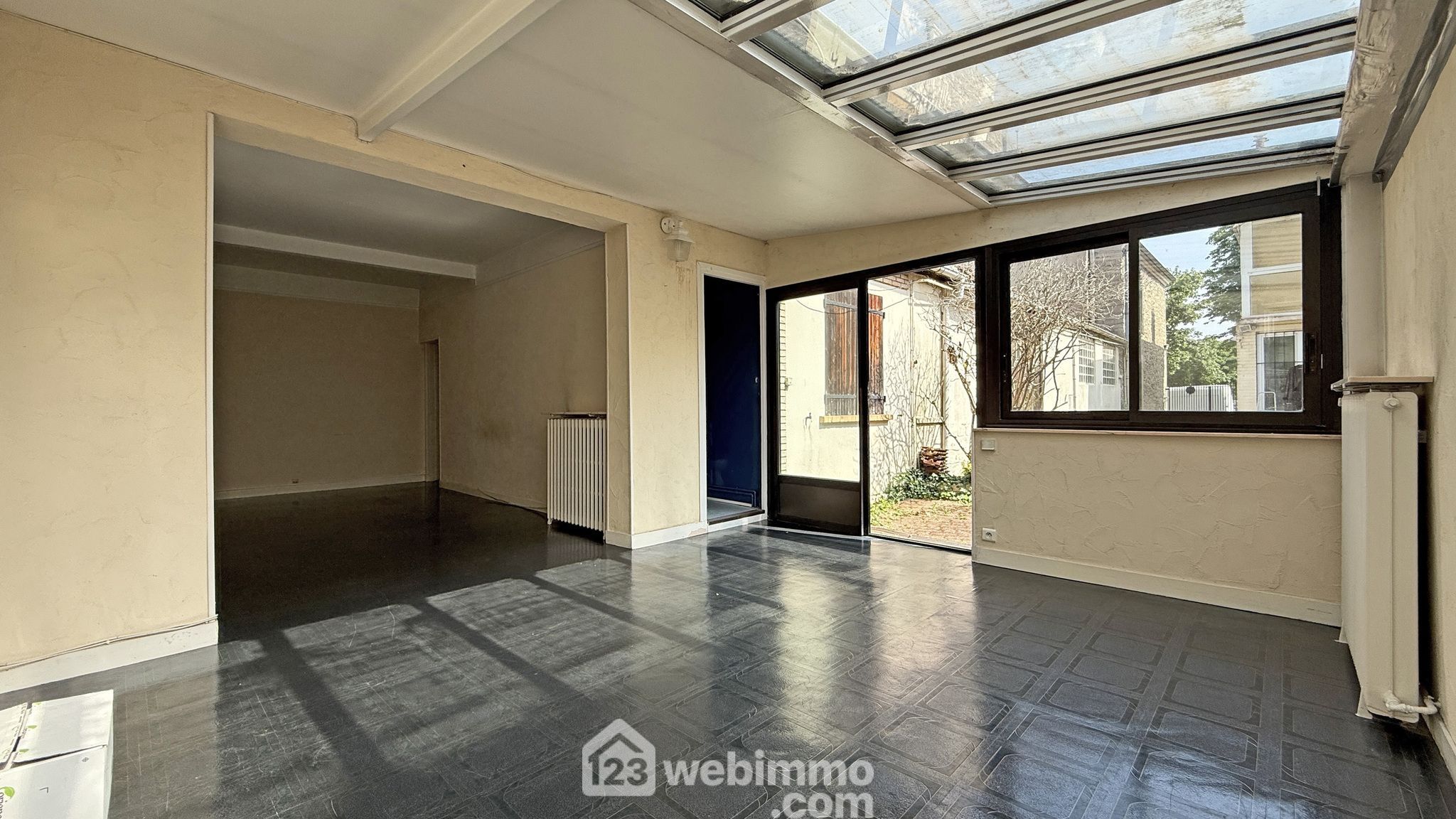 Au pied des transports et commerces et à 300m du groupe scolaire Les Tilleuls, maison de ville constituée d'un pavillon principal offrant séjour et véranda, cuisine séparée (cuisine américaine possible), 2 chambres, mezzanine, bureau, buanderie, salle d'eau, salle de bain, 2 wc, chaufferie et cave. Extension aménageable de 28m2 avec belle hauteur sous plafond permettant l'extension du séjour, l'exercice d'une profession libérale ou l'aménagement d'une suite parentale. Le tout au calme absolu, sur une parcelle de 250m2 avec 2 box de 18m2 chacun.