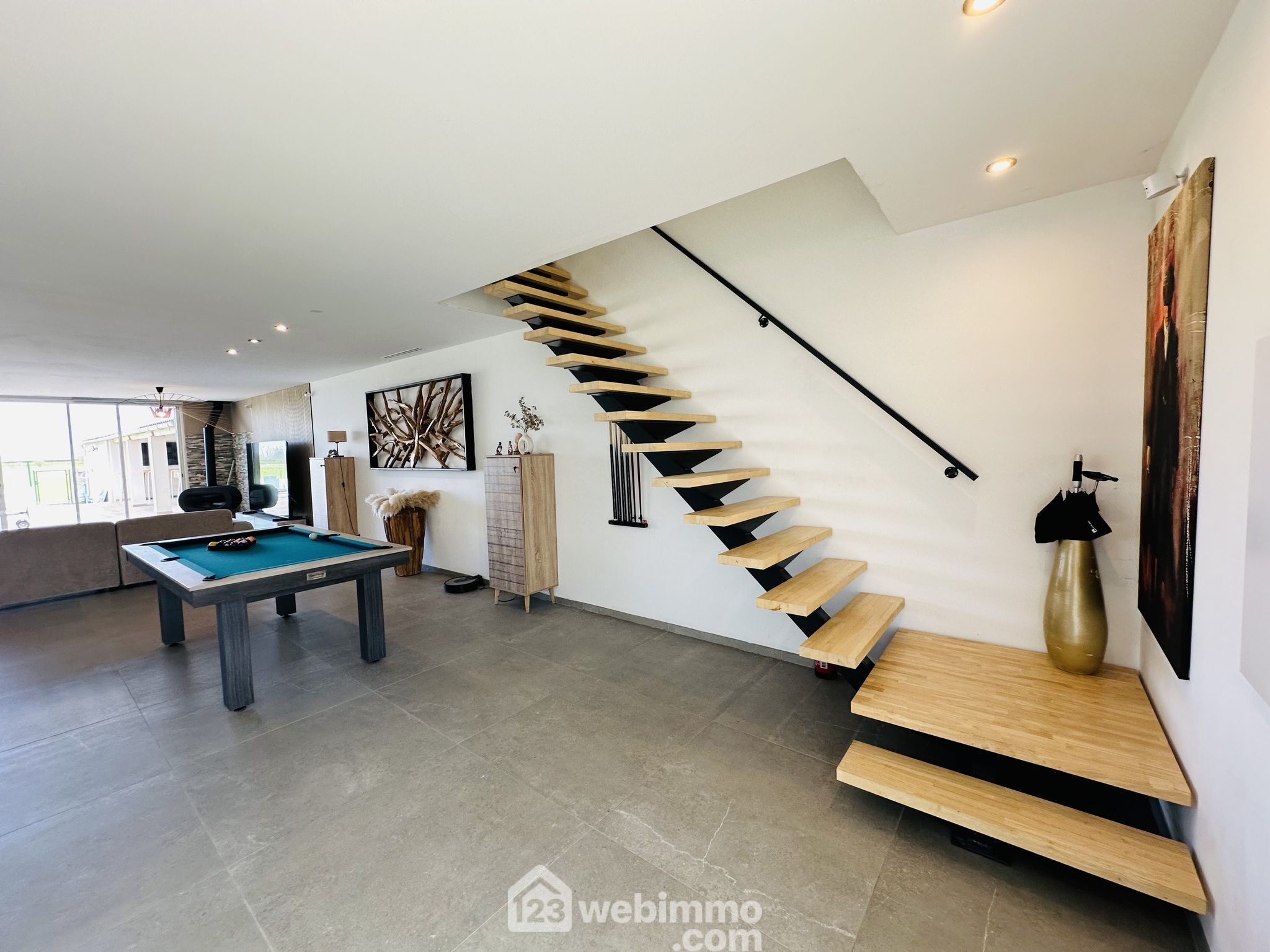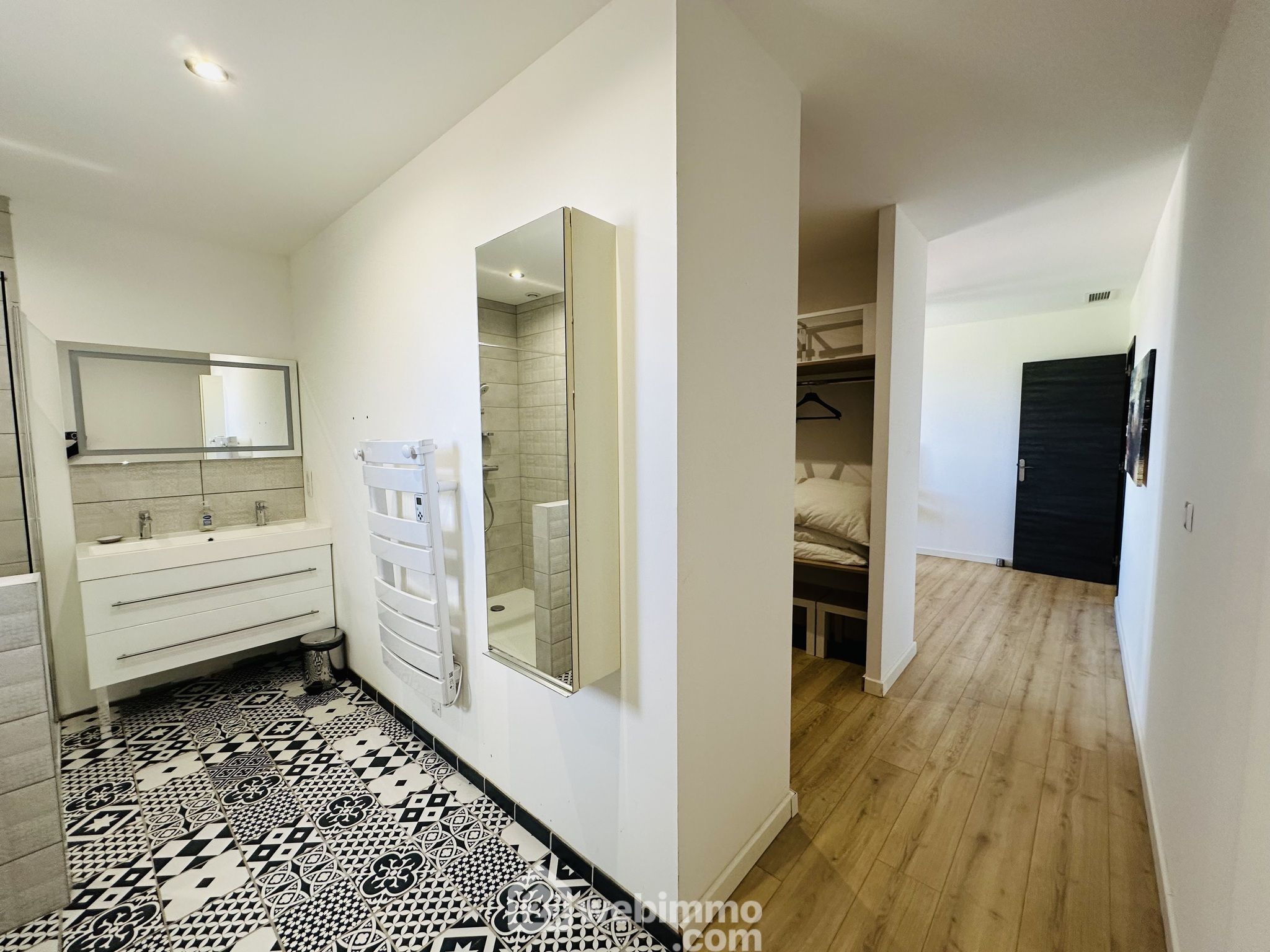 Avec ses 235 m² habitables, au rdc un magnifique salon/cuisine de 99m² ouvert sur la terrasse et la piscine, une suite avec grande chambre, placard et salle d’eau, un wc séparé, un cellier, à l’étage 2 suites composées chacune d’une chambre, placard, salle d’eau et WC, un bureau ou 5ème chambre de 16m², 1 suite composée d’une grande chambre, dressing, salle d’eau, baignoire et WC