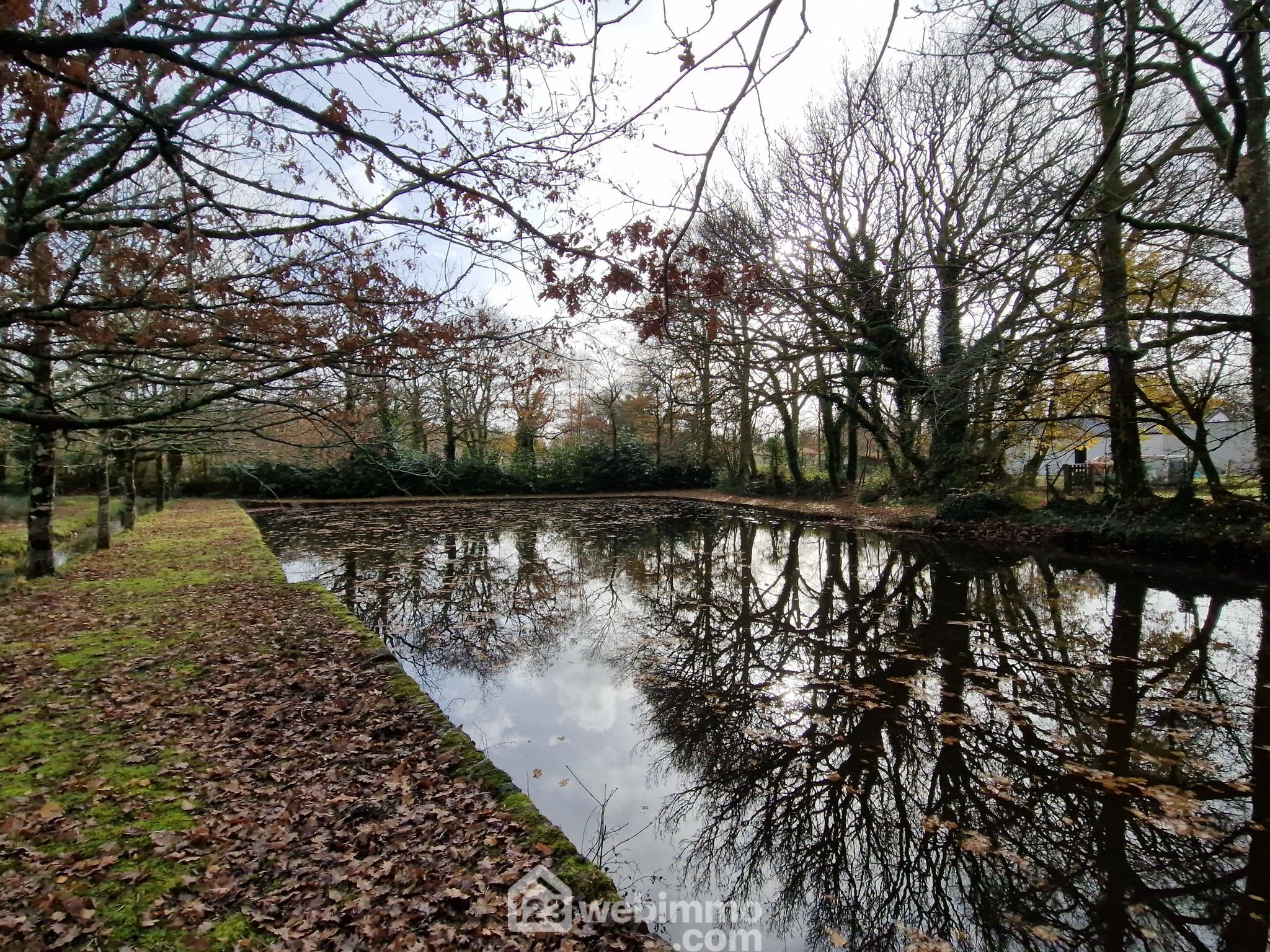 Dans un beau hameau équipé du tout à l'égoût, ce terrain, unique en son genre, vous permettra d'implanter une maison, sur sa partie constructible, et de profiter également de sa partie classée en zone naturelle, avec un très bel étang aménagé, des espaces végétalisés, une petit verger, pour un total de plus de 3 000 m².
