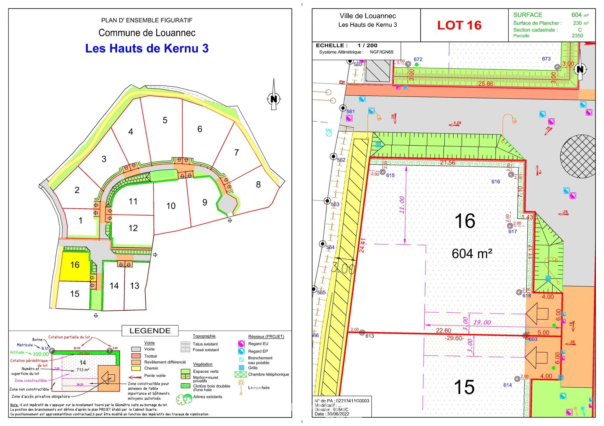 Louannec - Côte de granit Rose, une parcelle de terrain à bâtir, lot numéro 16 d'une contenance de 604m², viabilisée Voirie, Eau, Electricité, Tout à l'Egout.