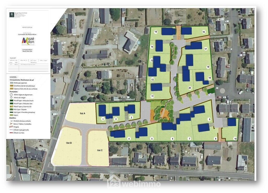 Terrain constructible et viabilisé de 688m² (lot numéro 18) dans le lotissement "Les Champs de Mazé" comprenant 20 parcelles de 395 à 688 m² au prix de 120 euros du m².