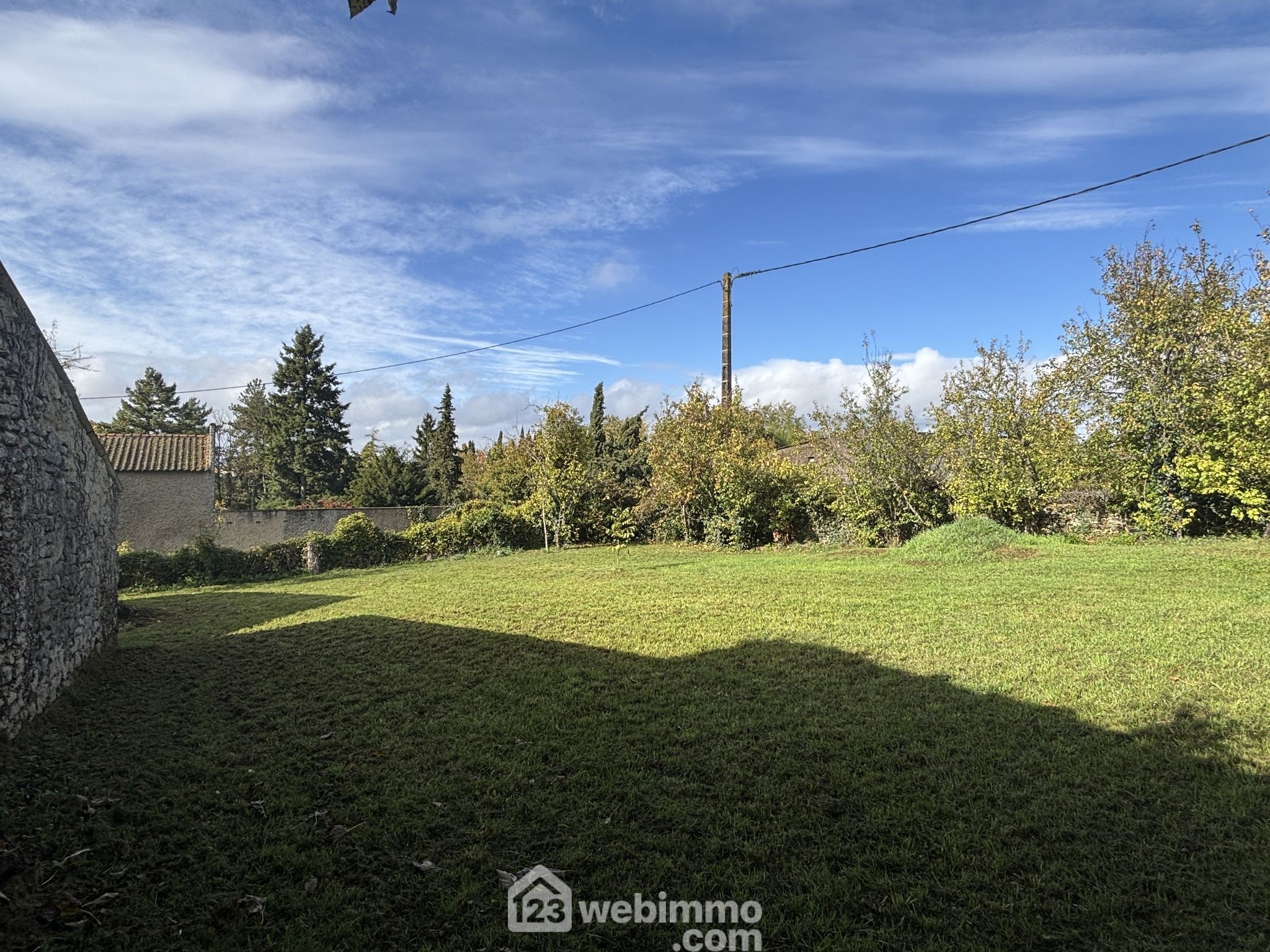 Terrain constructible plat de 438 m2, partiellement clos de murs en pierre et sans vis-à-vis.