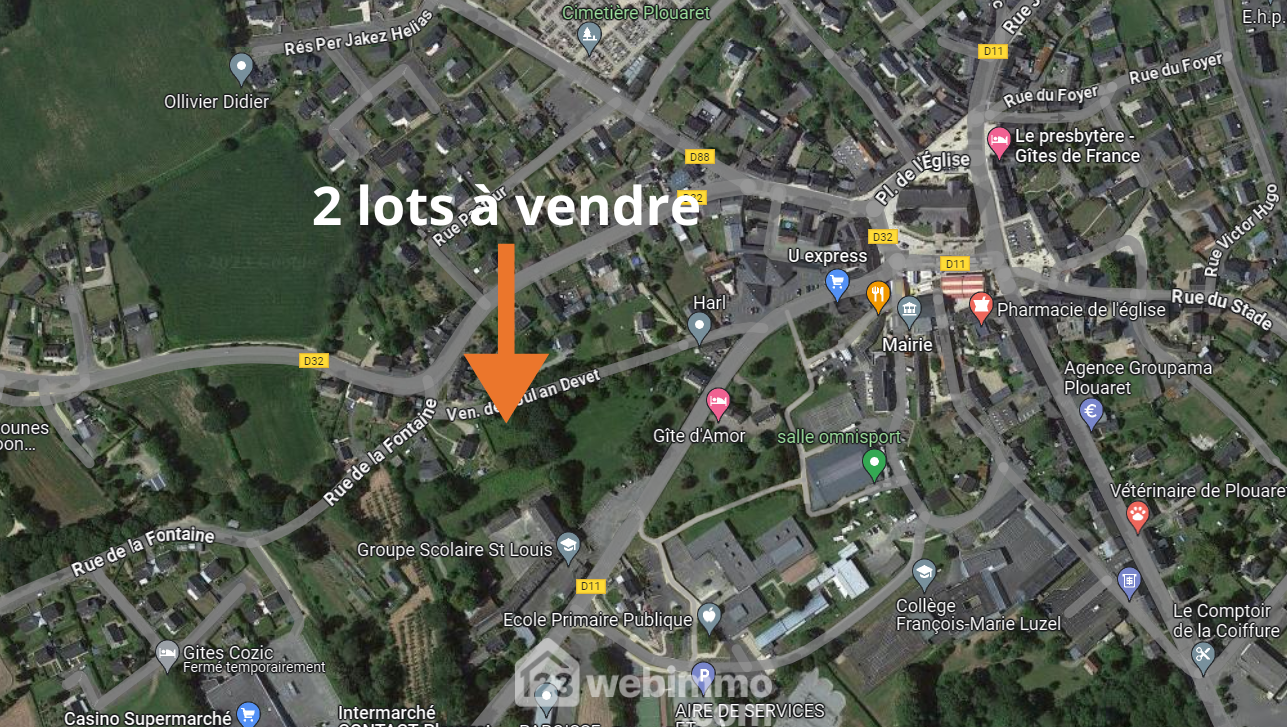 Dans le bourg de Plouaret, à 100m des commerces et 3 minutes de la gare TGV, terrain à bâtir de 791m2, non viabilisé. LOT B.
