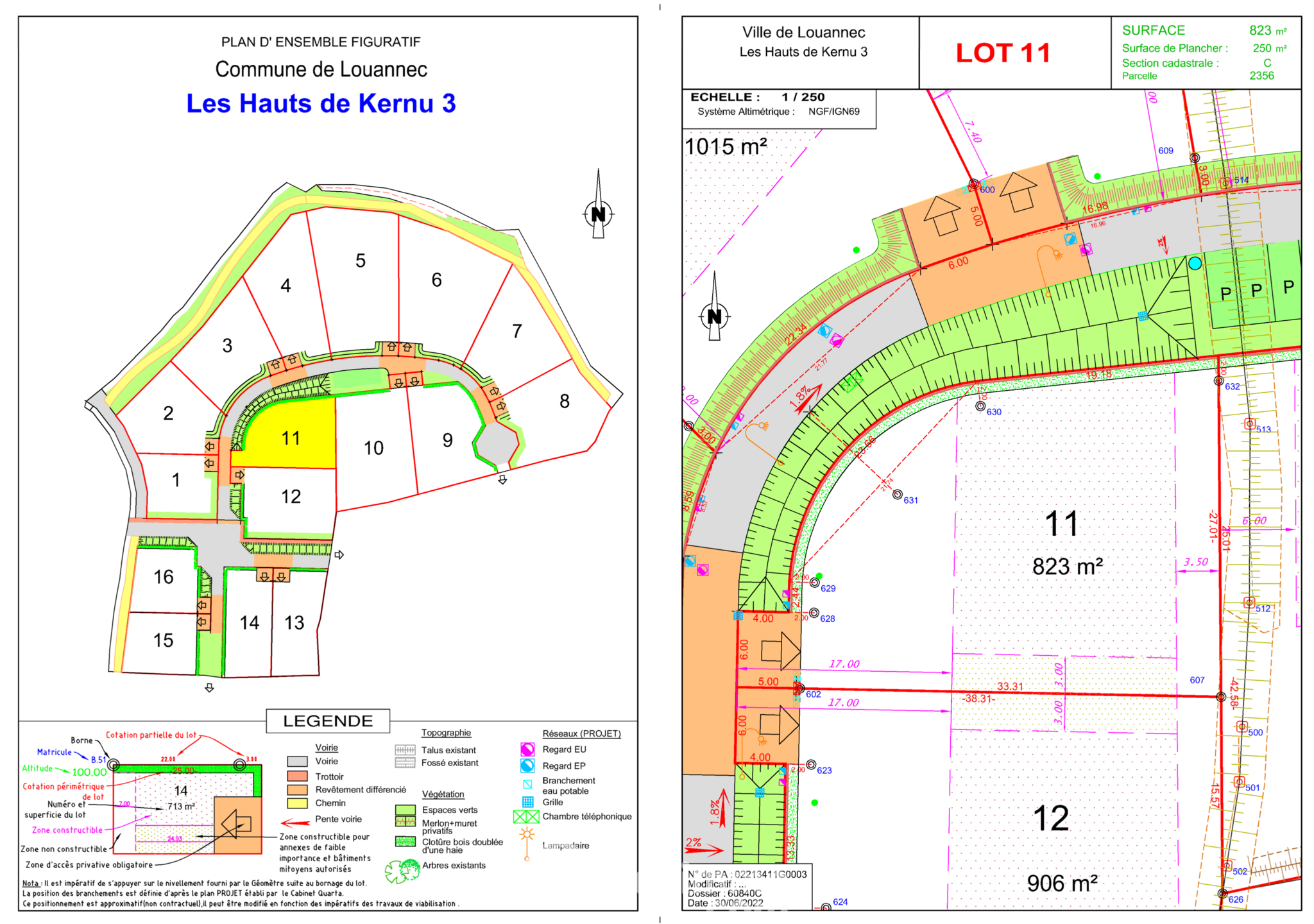 Ce lot n°11 de 823 m², déjà viabilisé (voirie, eau, électricité, tout-à-l’égout), se situe dans un quartier résidentiel privé et de standing, garantissant calme et qualité de voisinage.