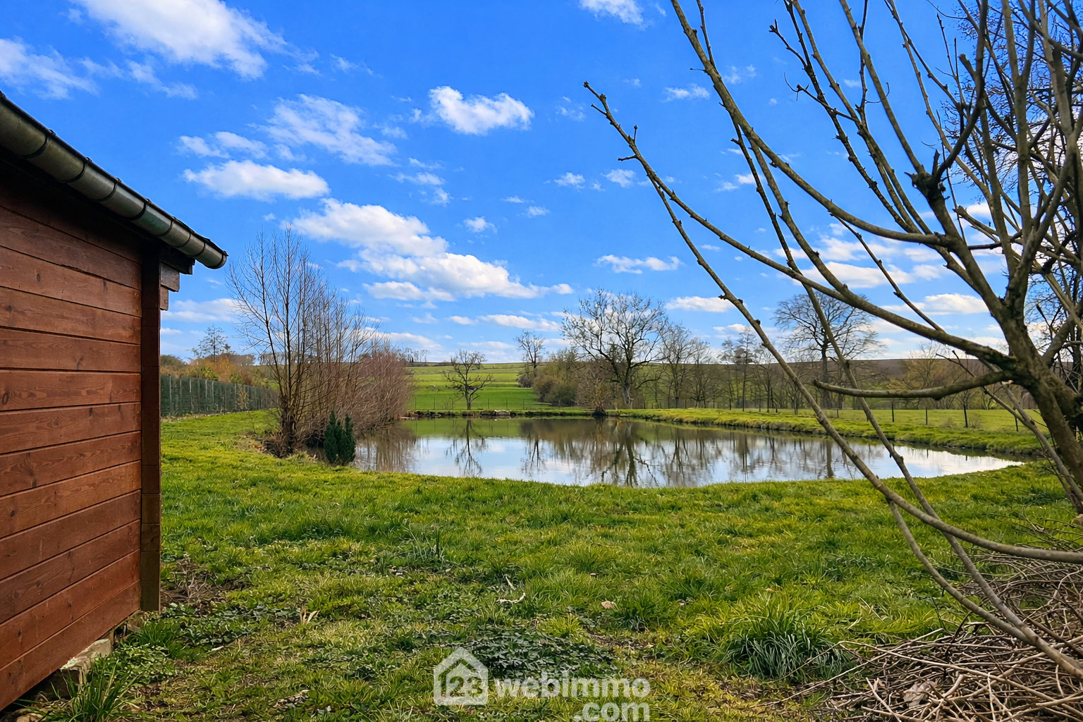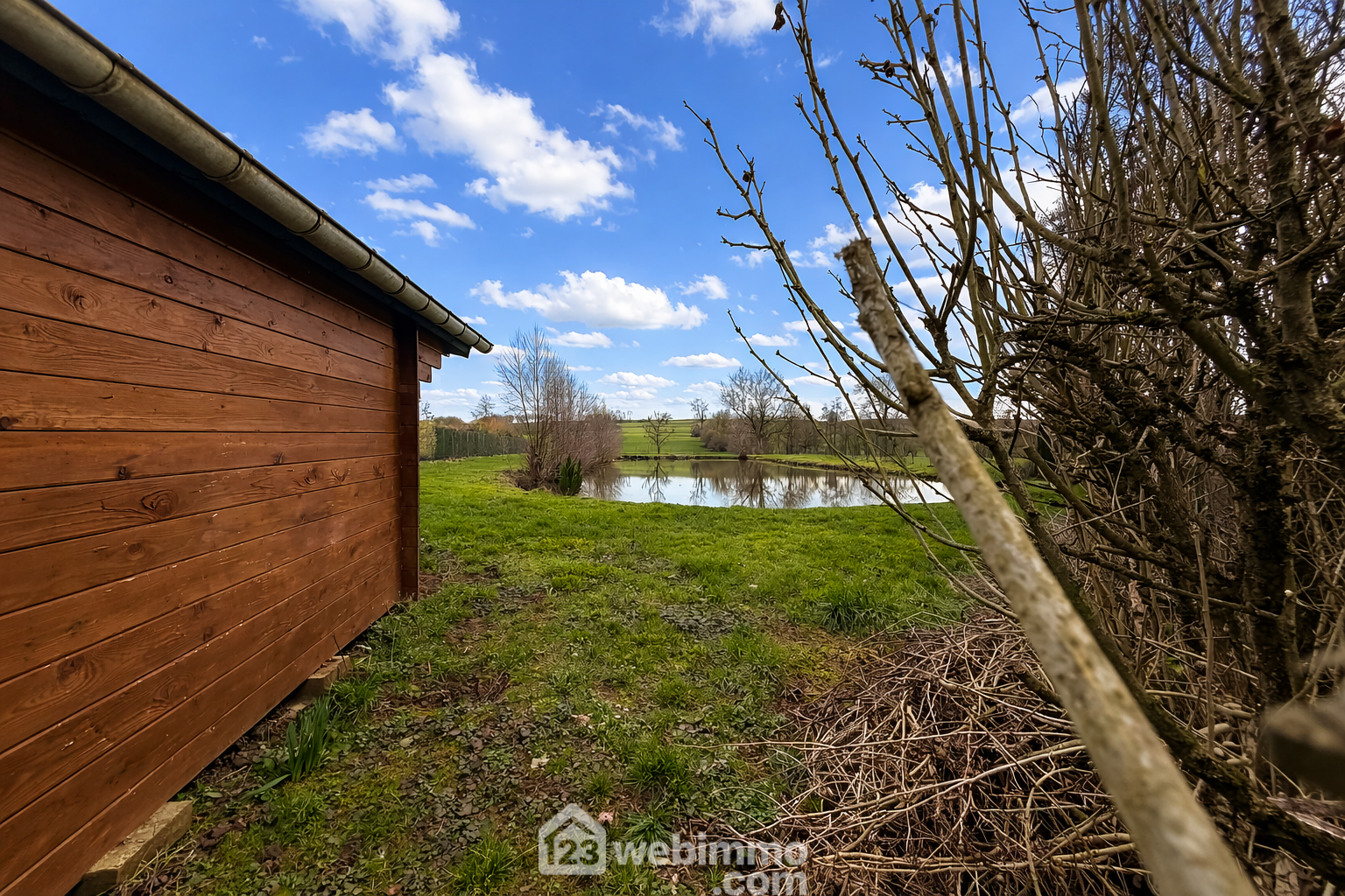 L’étang, d’une profondeur variant de 1,10 m à 1,40 m selon les saisons, accueille déjà des poissons et offre un cadre idéal pour la détente, la pêche ou simplement profiter du calme environnant.