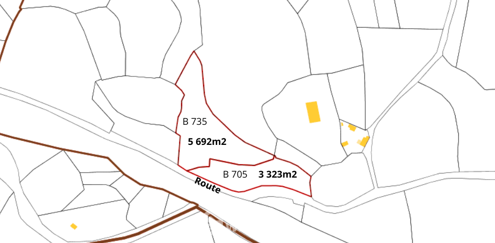Il y a 2 parcelles, la 1ère est cadastrée Section B, Numéro 705 et la 2ème est cadastrée Section B, numéro 735.
