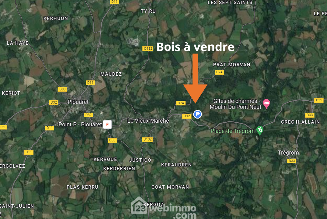 A 7 minutes de PLOUARET, venez découvrir cette parcelle boisée, idéale pour la coupe de bois de chauffage, composée majoritairement de noisetiers et de chênes située sur la commune de Vieux-Marché près de Plouaret (22). La surface totale est de 9015 m². Route en bordure du terrain.