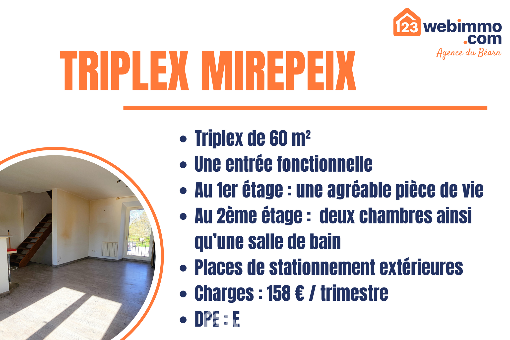 Situé sur la commune de Mirepeix, dans un environnement paisible, venez découvrir ce triplex de 61 m², idéal pour un premier achat ou un investissement locatif.