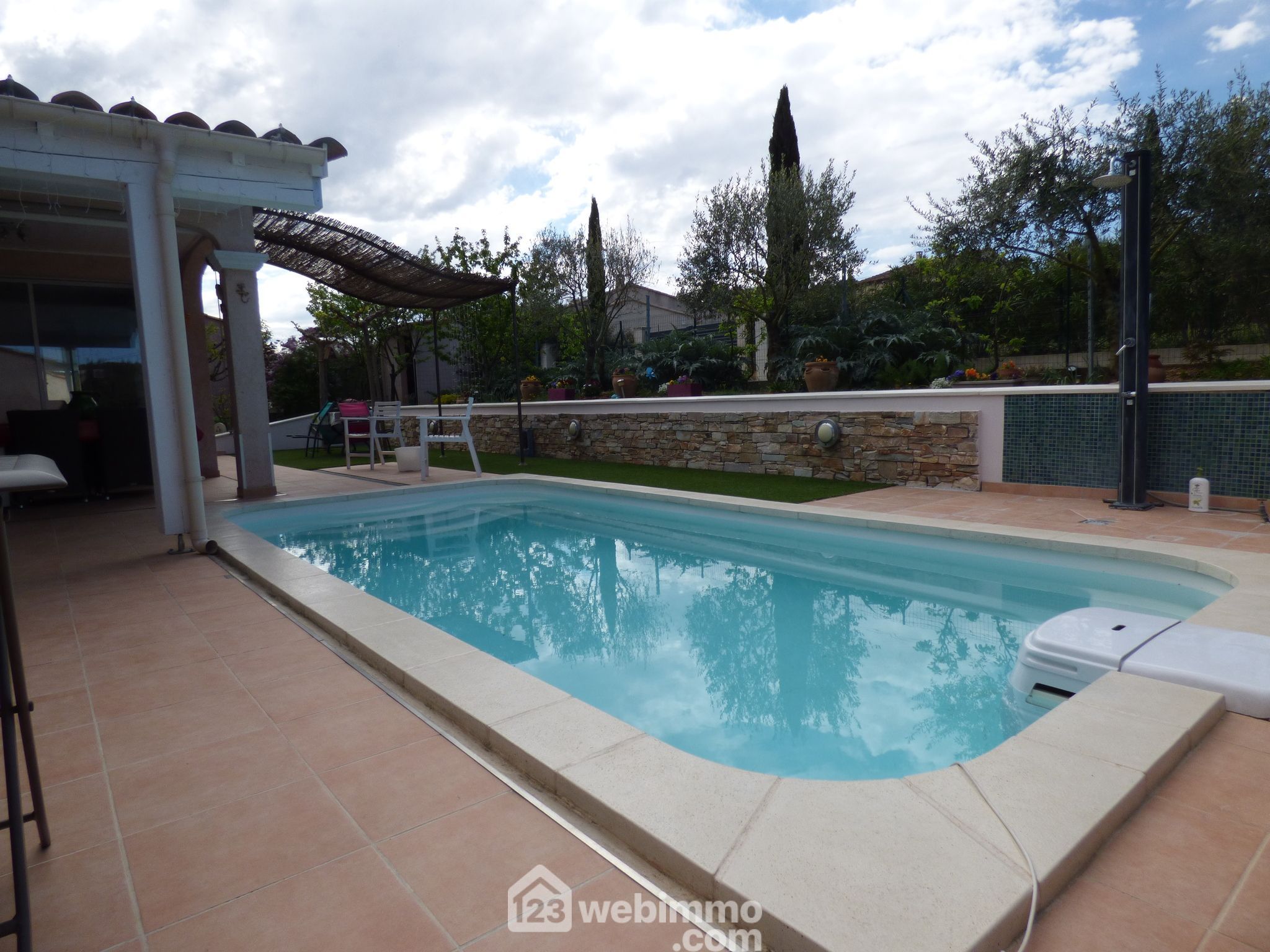Elle offre une belle qualité de construction et un agencement fluide et fonctionnel. Parfaitement entretenue, tant pour les intérieurs que les extérieurs, elle offre: une entrée, un séjour climatisé (33m²) se prolongeant sur terrasses. Cuisine ouverte et toute équipée (10m²). Trois chambres dont l'une équipée d'une salle d'eau. Une salle d'eau indépendante. Cuisine d'été. Garage.