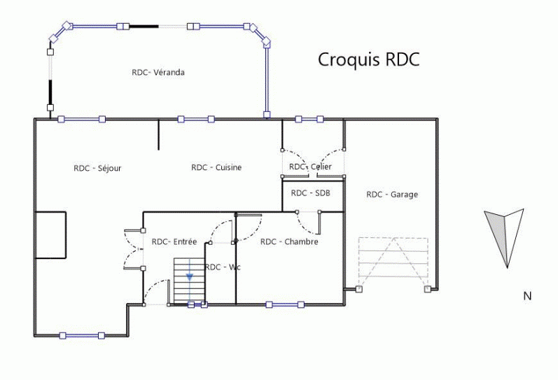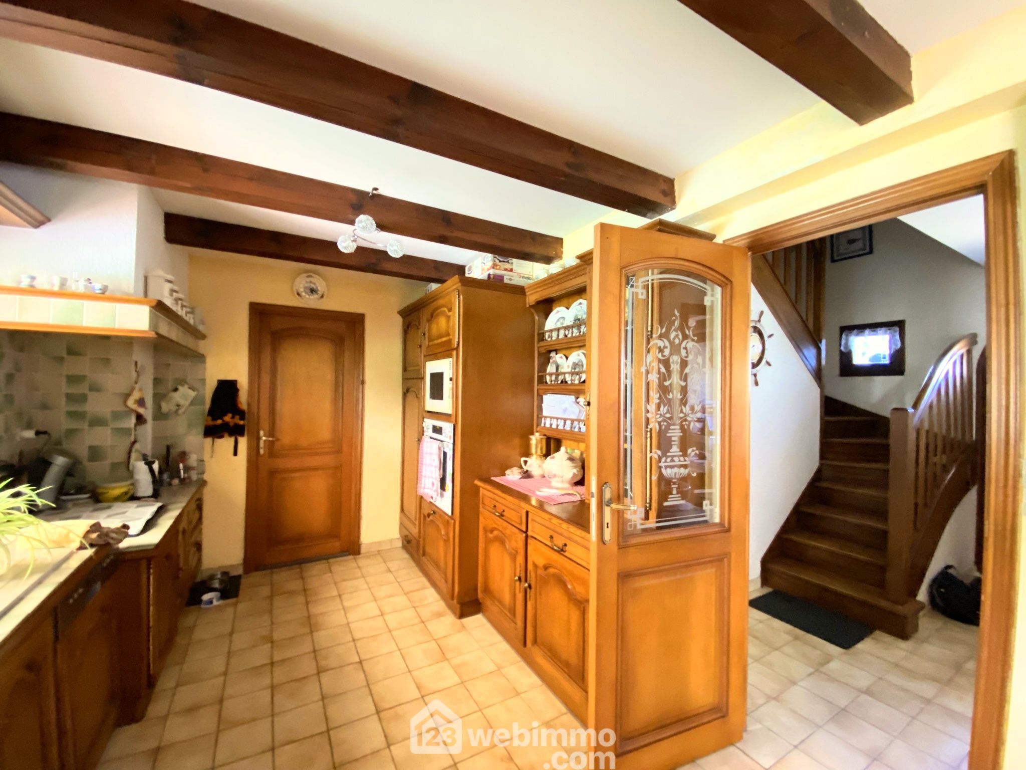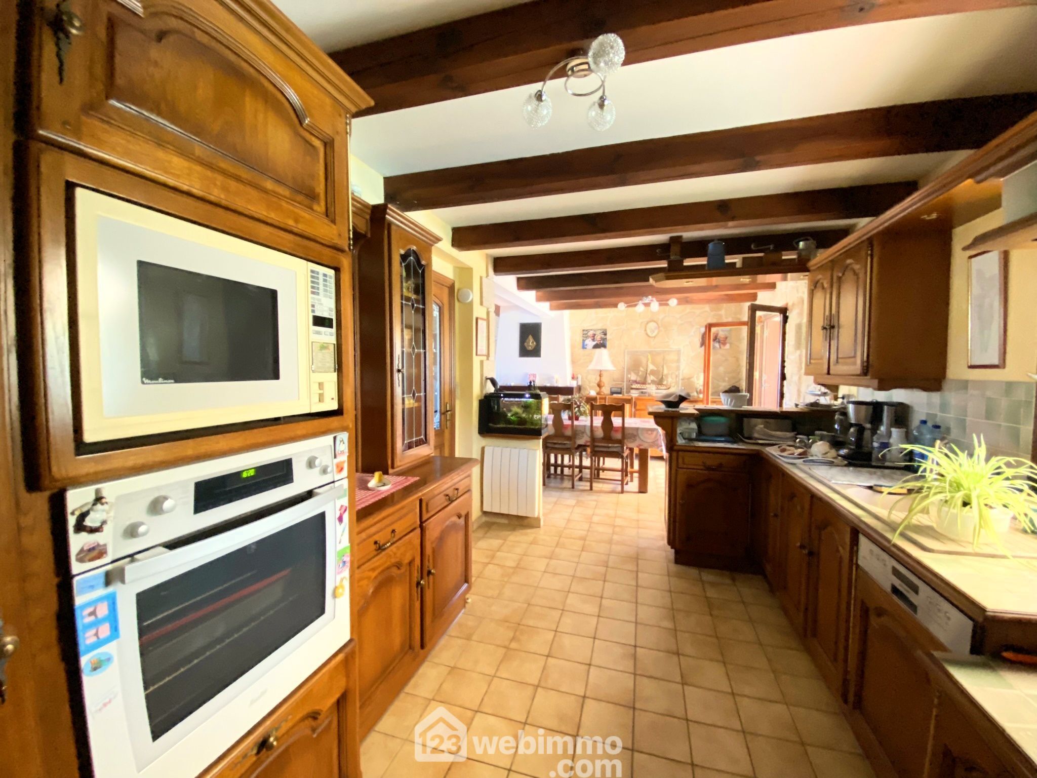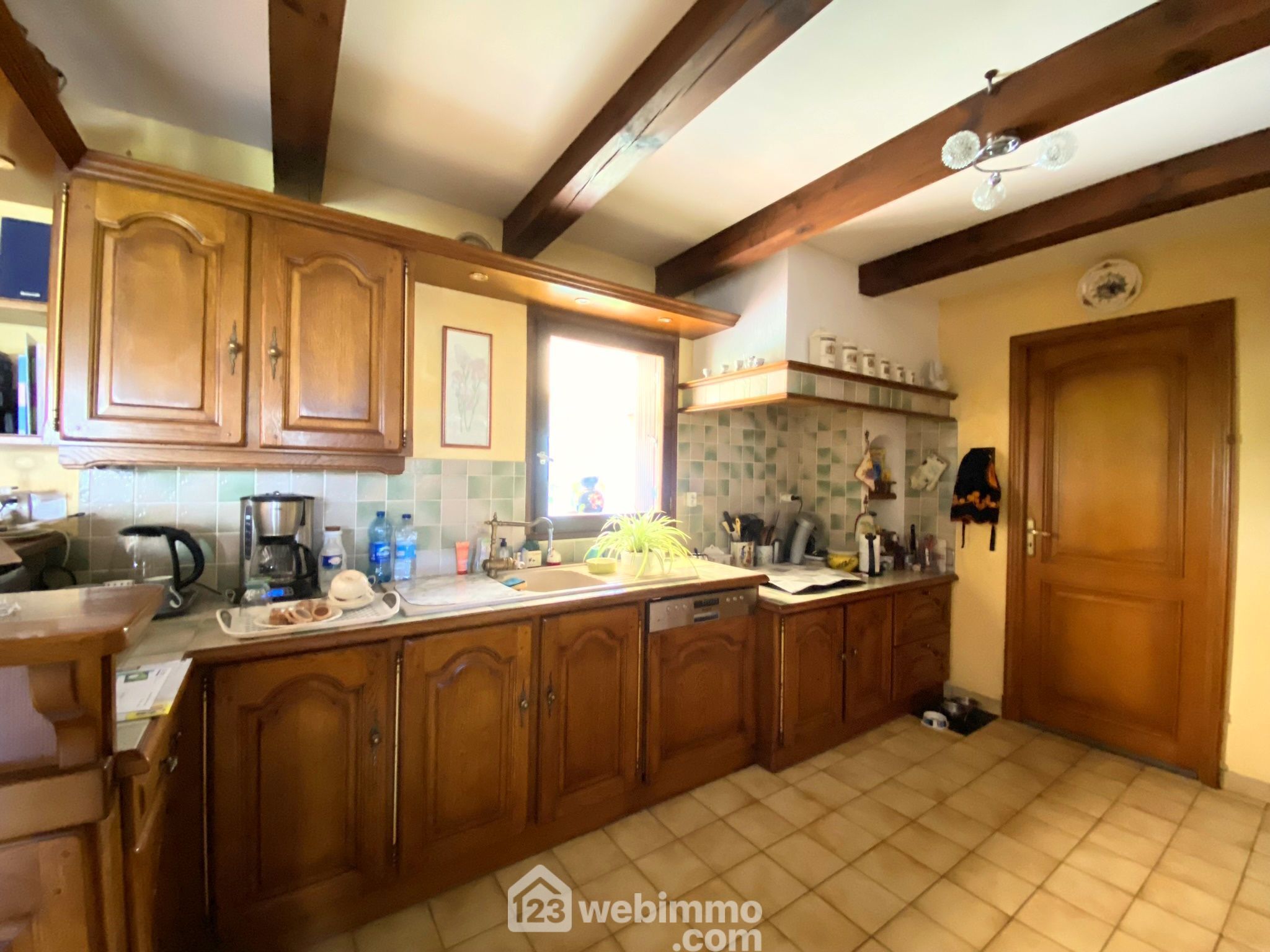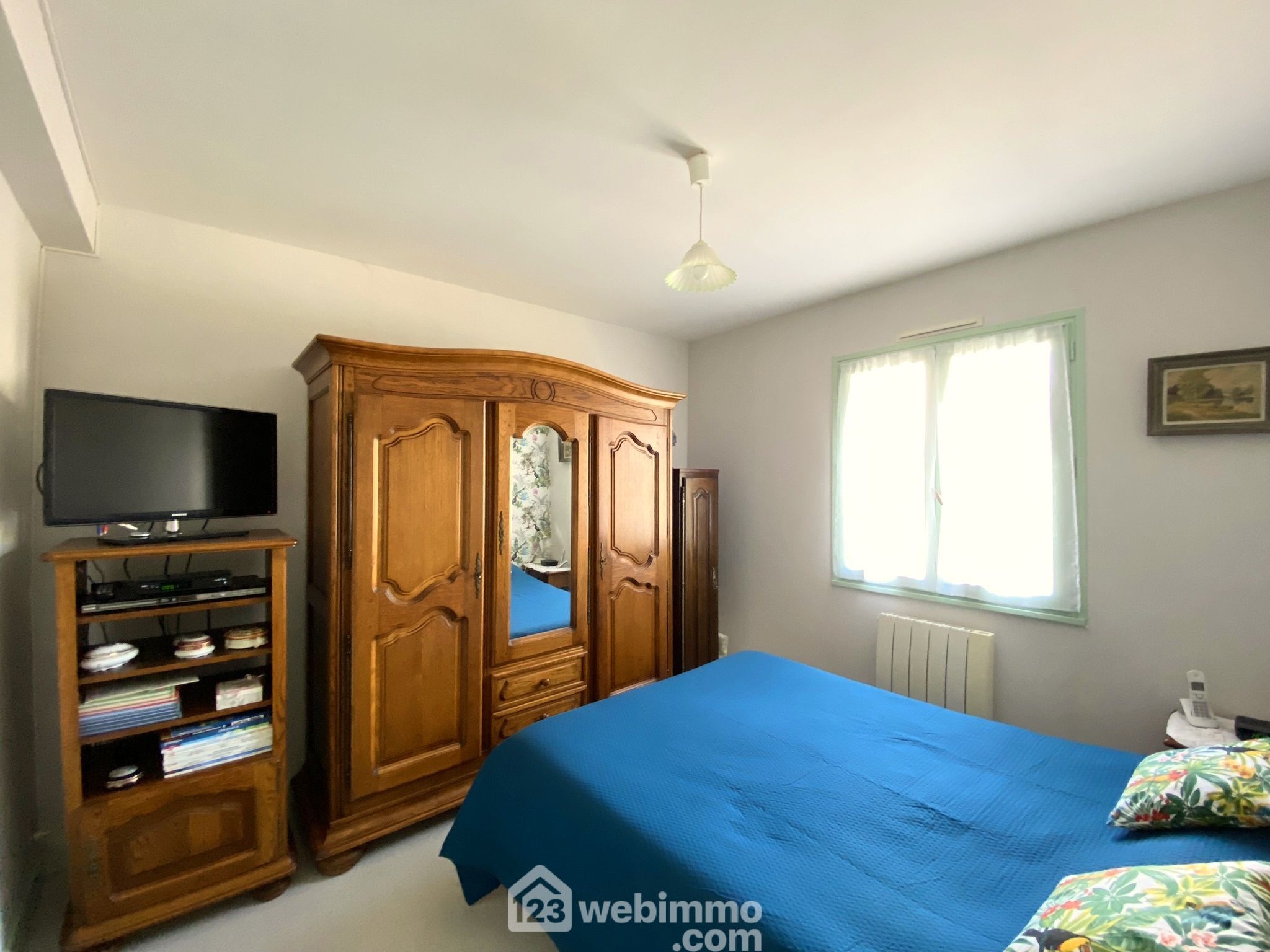 La maison comprend 2 niveaux: le rez-de-chaussée s'ouvre sur une entrée desservant un salon/salle à manger de 23m2 avec une cheminée - insert prolongé au sud d'une véranda de 19m2, une cuisine ouverte aménagée et équipée de 12m2 avec son arrière cuisine et une suite parentale de 11m2 avec salle de douche. Un WC séparé complète ce niveau.