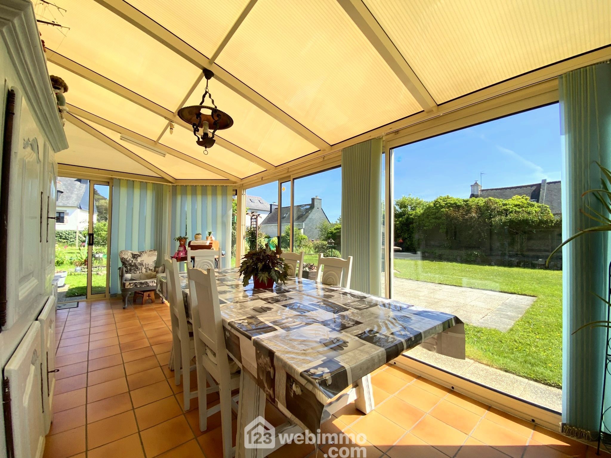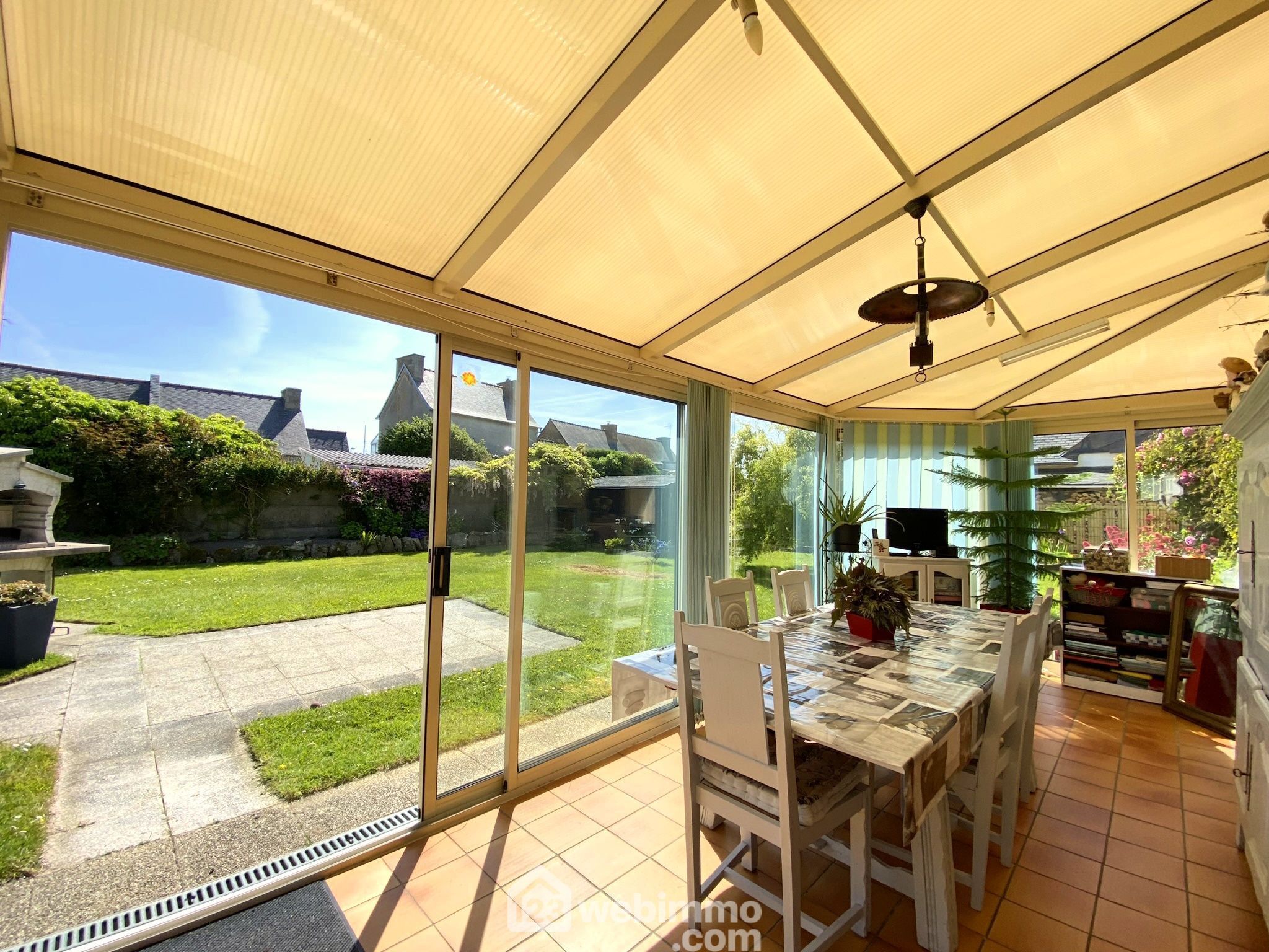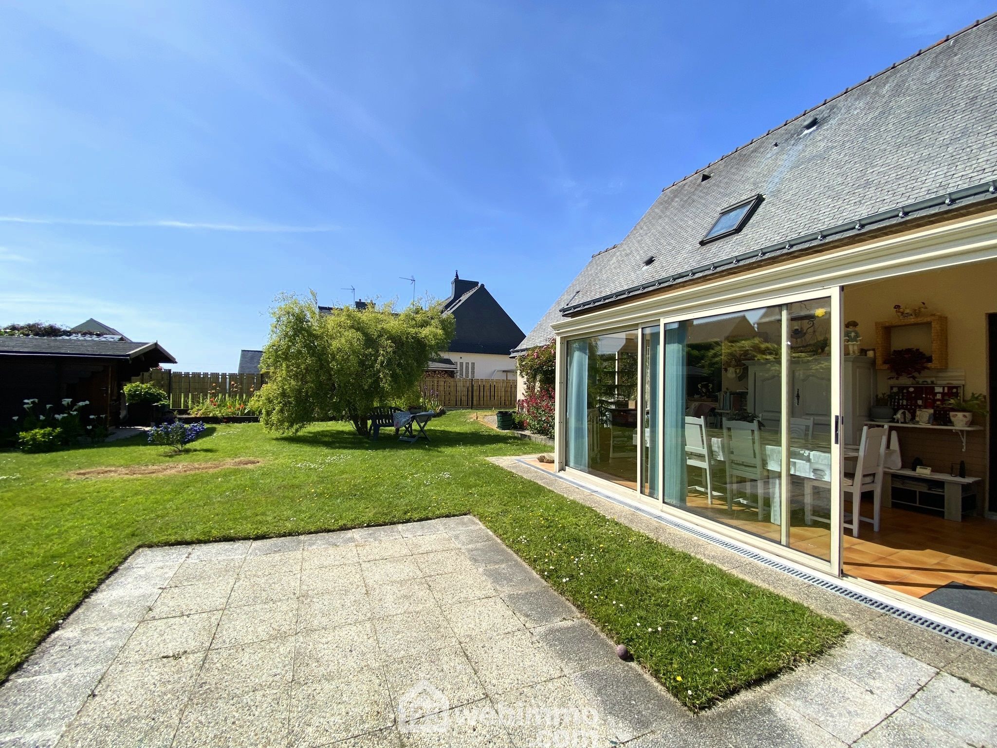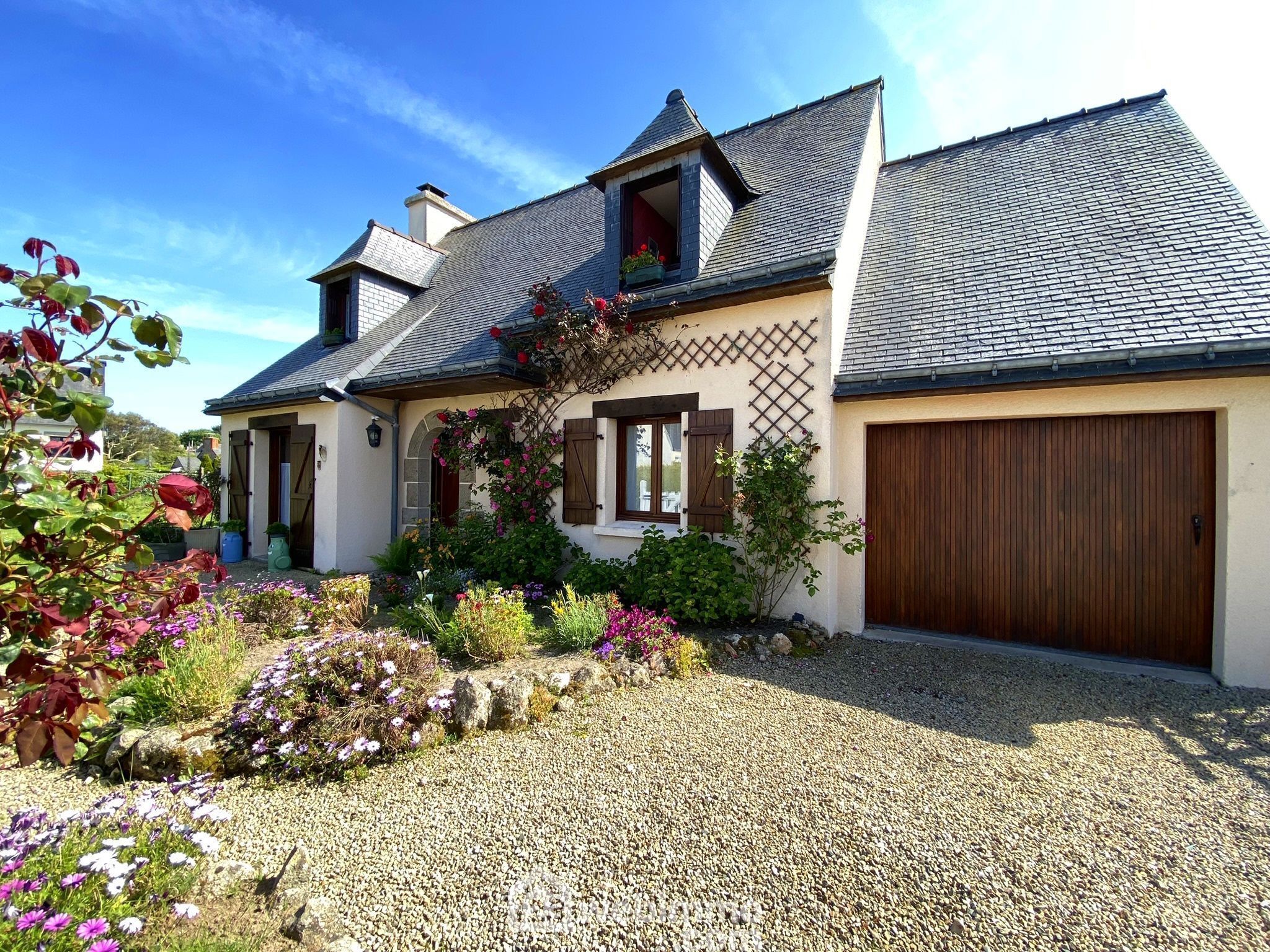 Dans un quartier résidentiel, au calme, à 300m de la plage de Notigou et autant de la pointe du Dourven, à 200m du bourg de Locquémeau, sur un terrain 100% constructible de 631m2, orientée Sud, maison néo-bretonne de 1979 de 110m2 habitables et 118m2 au sol.