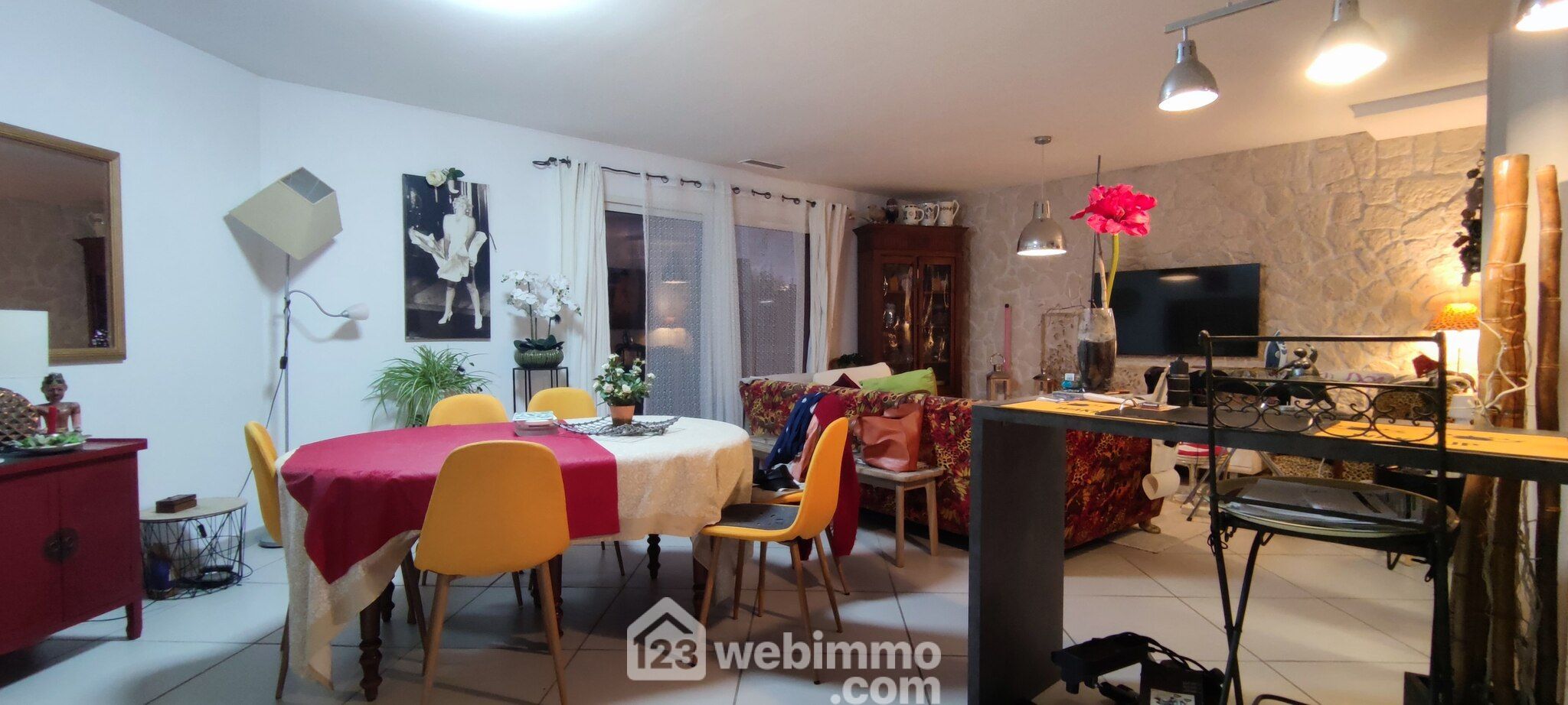 Maison de 114 m2 environ composée d'une pièce de vie de 40m² avec accès direct à la terrasse et au jardin piscinable, d’une cuisine équipée, d’une salle de bain avec double vasque et douche à l'italienne, de 3 chambres, d’un garage et d’un cellier.