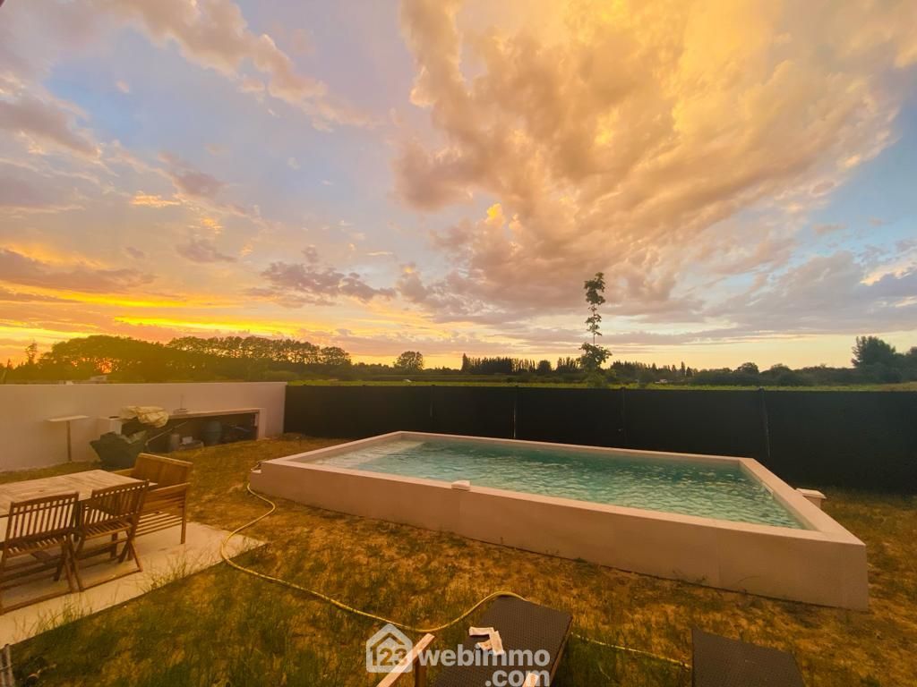 A l'extérieur, une belle piscine maçonnée de 3,5 x 7m sur l'arrière du terrain sans vis à vis.