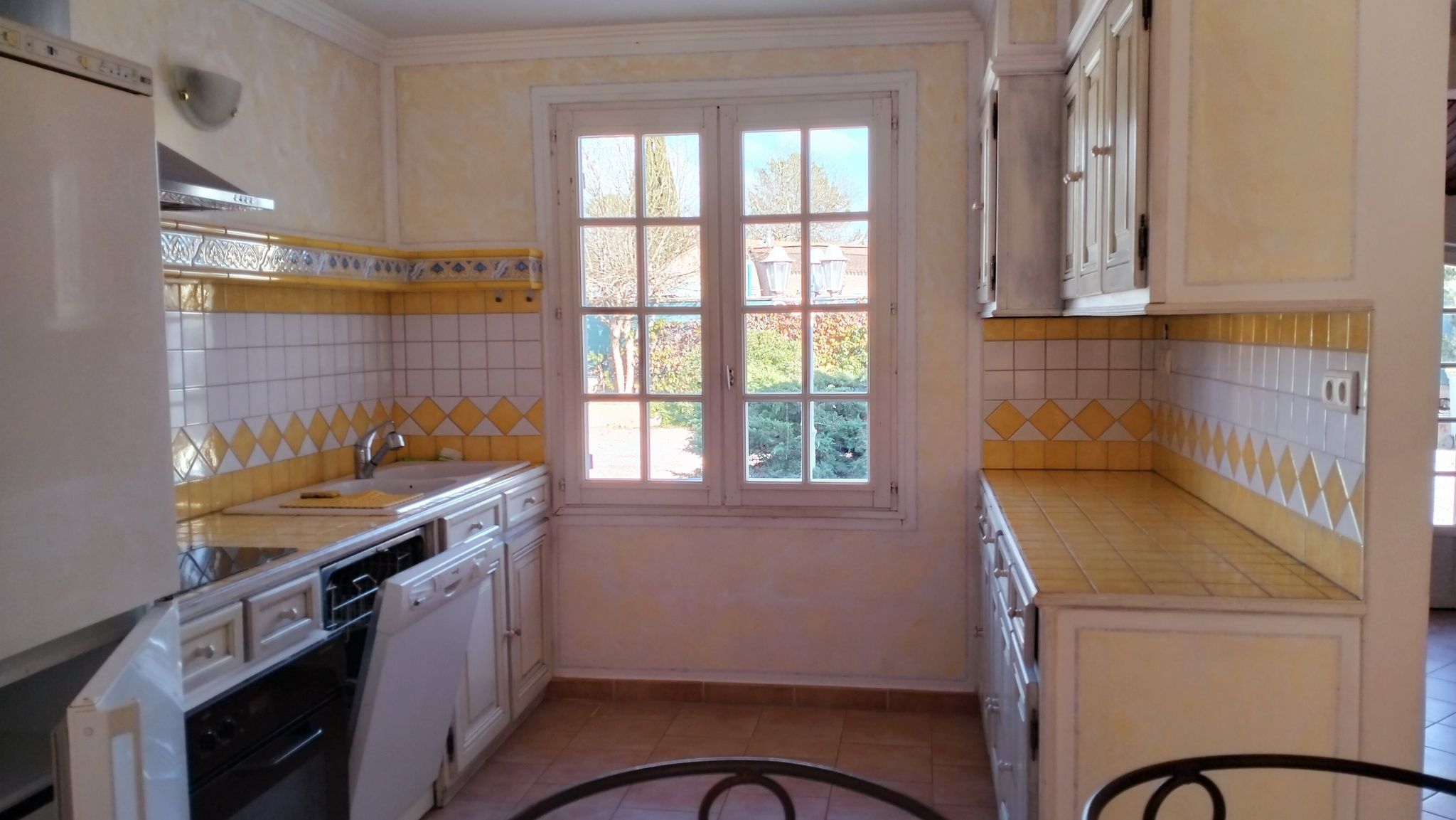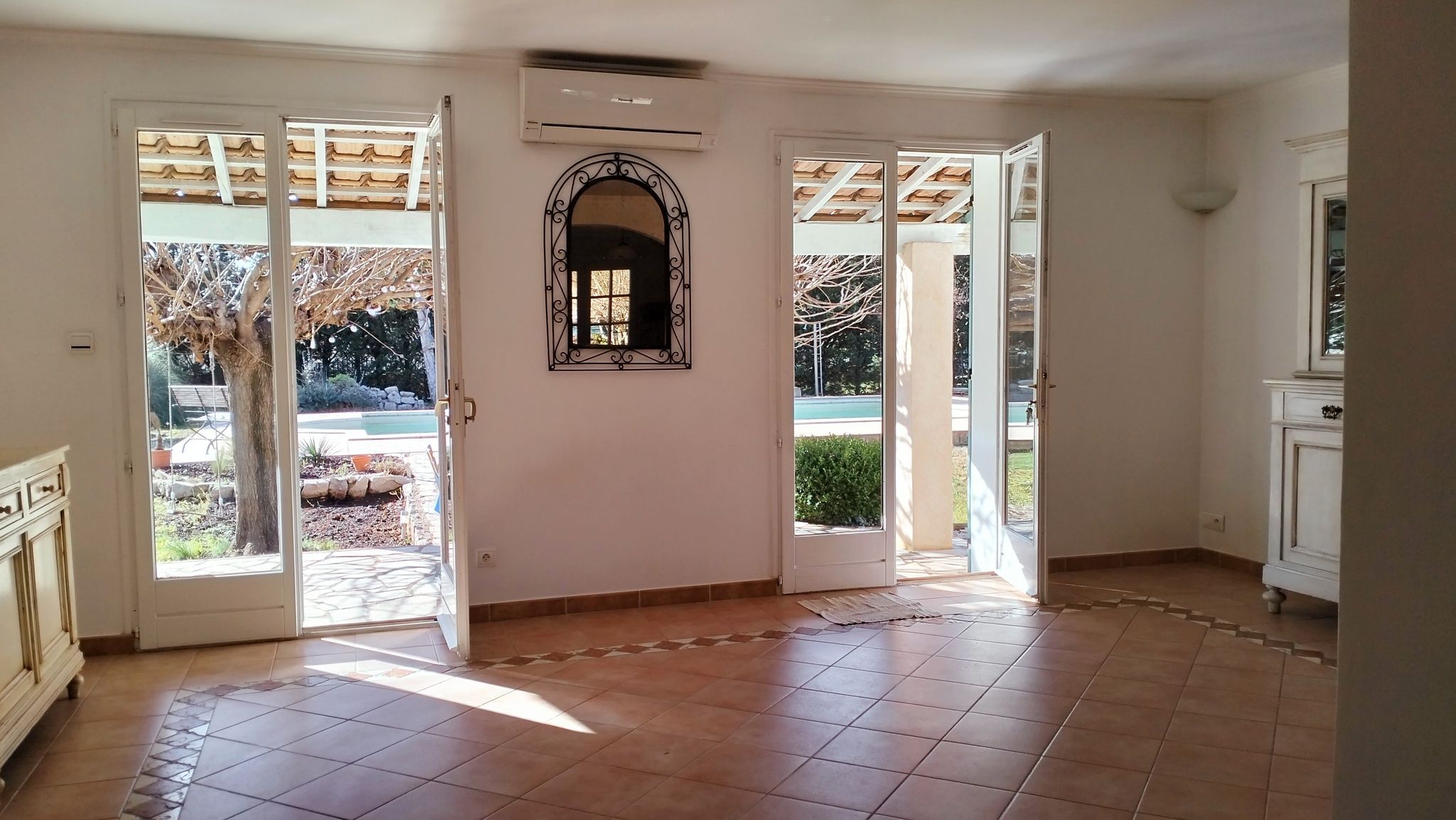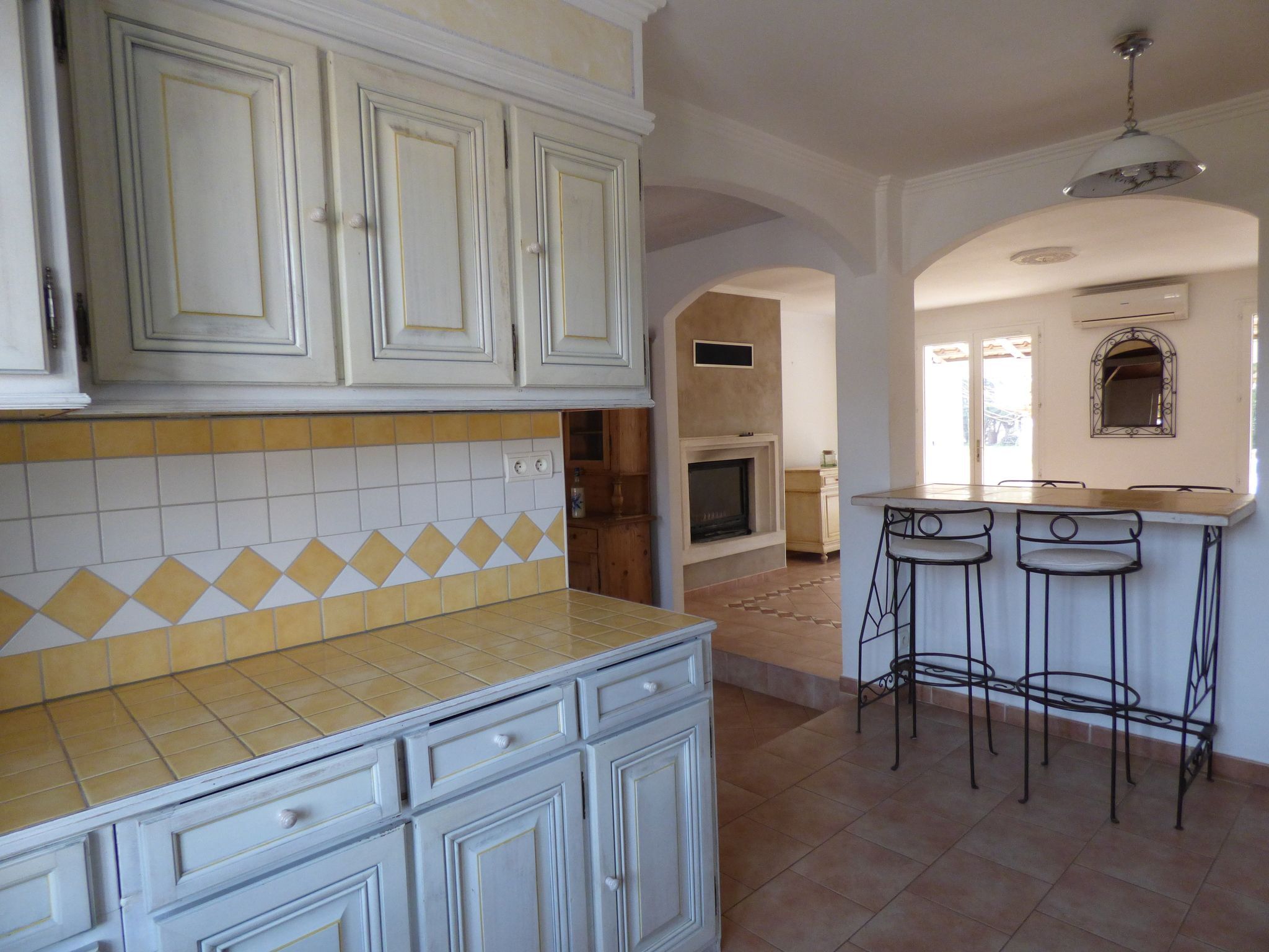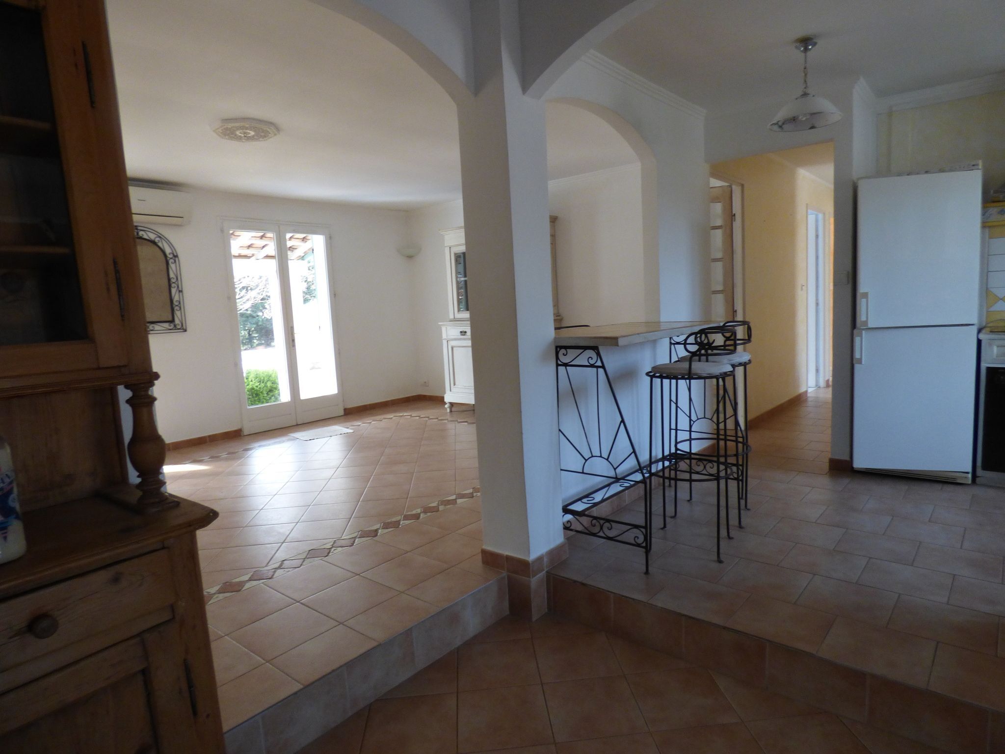 Au LUC EN PROVENCE, villa de plain pied de belle construction offrant une entrée, un séjour avec cheminée se prolongeant sur une grande terrasse semi-couverte, une cuisine familiale et un espace repas. Les pièces de vie sont climatisées. 4 chambres dont une chambre parentale. Toutes les chambres sont équipées de placards. Salle de bains et salle d'eau. wc. Abris voitures.