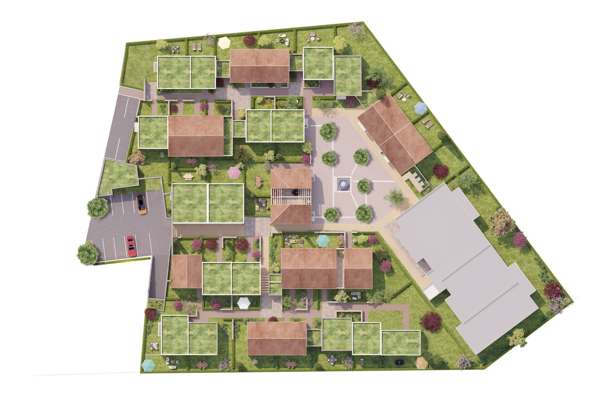 Au cœur de la résidence, une placette avec fontaine où vous vous retrouvez pour l’anniversaire des enfants, la fête des voisins ou pour simplement profiter d’un moment de quiétude.