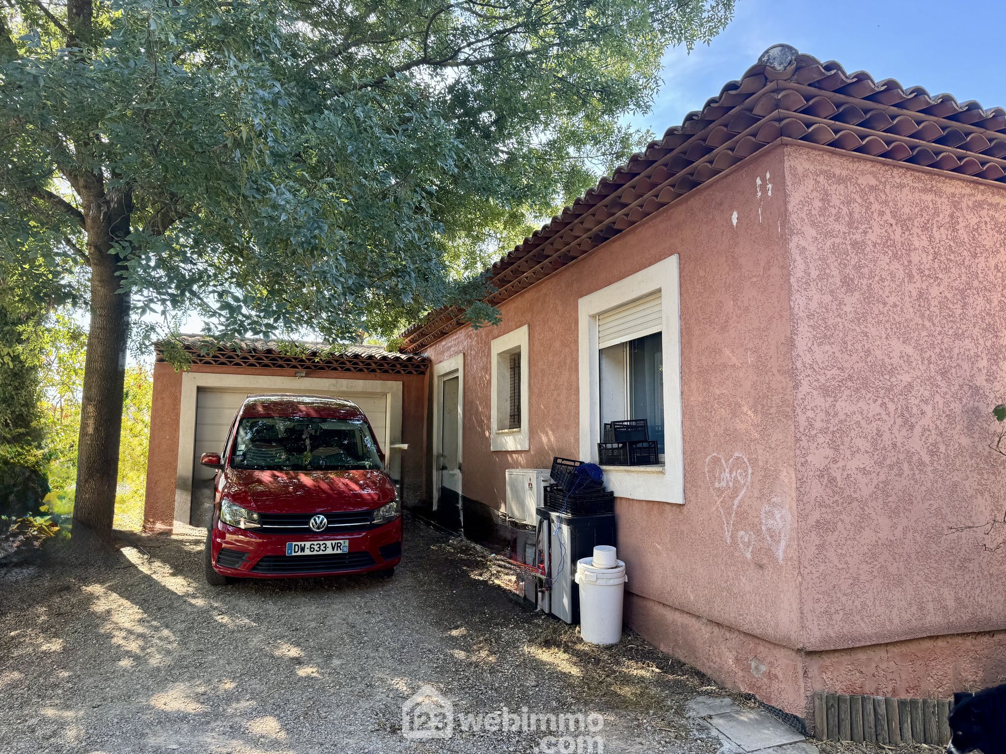La maison est indépendant et offre en sus du garage un espace de stationnement pour nombreuses voitures, camping car et même remorque bateau. Assainissement individuel, Forage. Une surface d'environ 130m² hors terrasses.