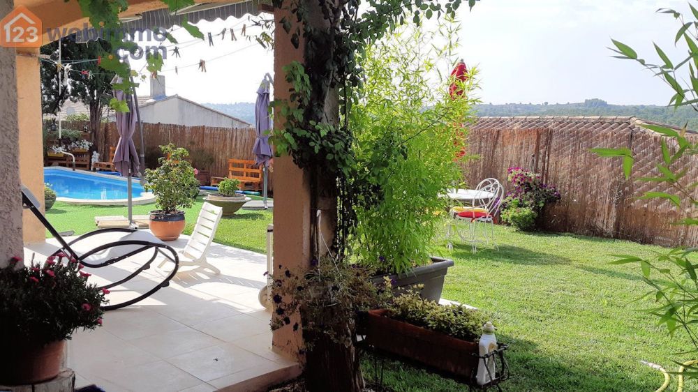 Dans les quartiers résidentiels prisés de Lançon-de-Provence, cette propriété exceptionnelle offre un cadre de vie paisible et enchanteur. Nichée au cœur d'une végétation luxuriante, cette maison à étages partiel est un véritable coup de cœur. Description: Superficie habitable de 136m² répartie sur deux niveaux. À l'entrée, un jardinet arboré et un potager accueillent vos premiers pas. Au rez-de-chaussée, une spacieuse pièce de vie de 50m² baignée de lumière, avec poêle à bois et climatisation, s'ouvre sur une cuisine équipée et fonctionnelle. Depuis la pièce de vie, un balcon de 11m² offre une vue panoramique sur les collines, reliant harmonieusement l'intérieur à l'extérieur. L'espace nuit comprend trois grandes chambres, chacune avec son dressing. Une salle de bains et deux WC indépendants assurent un confort optimal. En rez-de-jardin, une pièce de 35m² climatisée s'ouvre sur une terrasse couverte et la piscine, offrant un espace détente idéal. Une quatrième chambre complète cet étage. Un jardin paysager avec piscine neuve (7,5x3,5m) et un garage avec porte électrique complètent cette propriété. Multiples possibilités d'aménagement : création d'une chambre supplémentaire au rez-de-chaussée ou aménagement d'un appartement T2 en rez-de-jardin. Points Forts: Rénovation récente et très bien isolée. Climatisation réversible et poêle à bois pour un confort optimal. Cuisine neuve et entièrement équipée. Vue dégagée sur les collines depuis la maison, la piscine et le jardin. Fort potentiel d'évolution avec une grande pièce au R-1, une cave spacieuse et des locaux d'atelier. Proximité immédiate des écoles et du centre-ville de Lançon-de-Provence. Ne manquez pas l'occasion de découvrir cette propriété d'exception offrant un cadre de vie idyllique et des perspectives d'aménagement infinies.