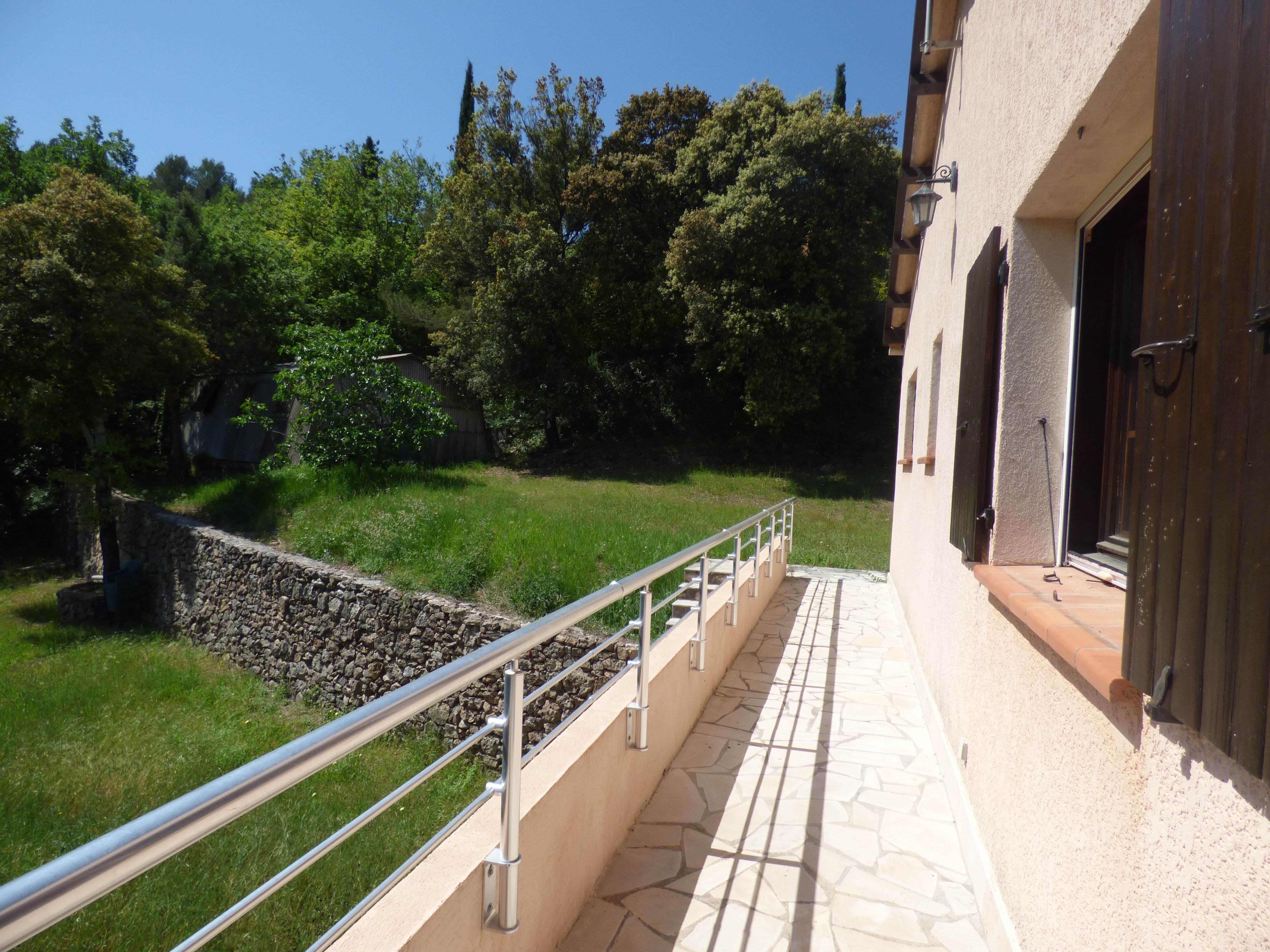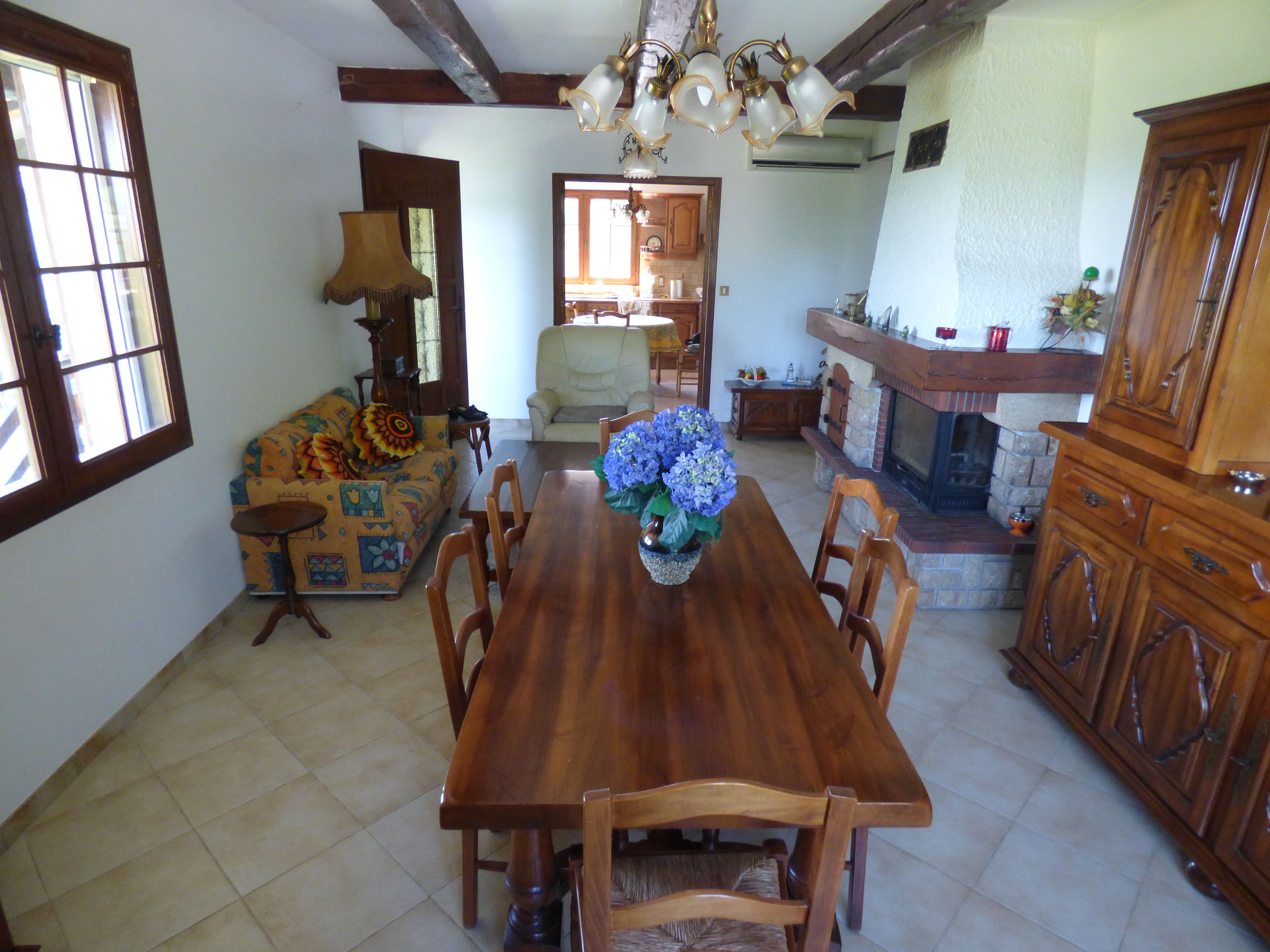 Au Thoronet, Villa 86M2 de belle qualité de construction offrant une entrée, un séjour de 26 m² avec cheminée, une cuisine familiale de 13m², accès sur terrasse et véranda. Tout de plain pied, deux chambres confortables - équipées de placards et une grande salle de bains. Wc indépendants.