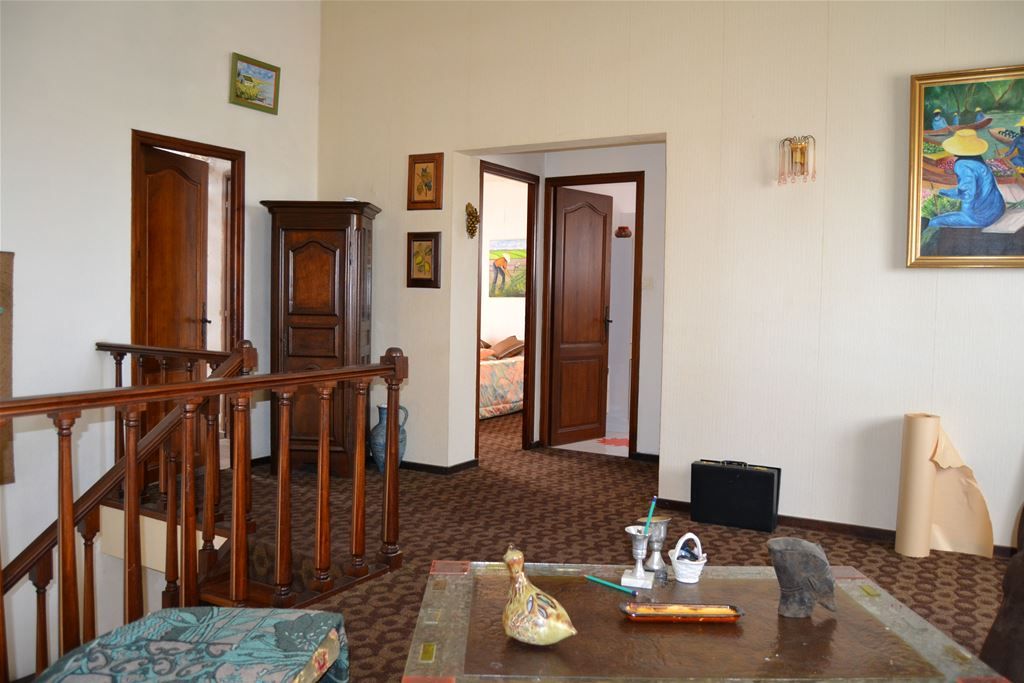 Elle se compose au rez-de-chaussée, d'un salon cathédrale d'environ 25M2 en open-space avec une salle-à-manger d'environ 20M2, une cuisine séparée équipée et aménagée de 17M2 attenante au garage de 25M2, dans la partie nuit, deux chambres avec placards, un wc, une salle de bains. A l'étage une mezzanine utilisé actuellement en salon d'environ 20M2, trois chambres avec placards dont une donne accès à un grand grenier, un wc, une salle d'eau. Dans un quartier calme proche de tout.