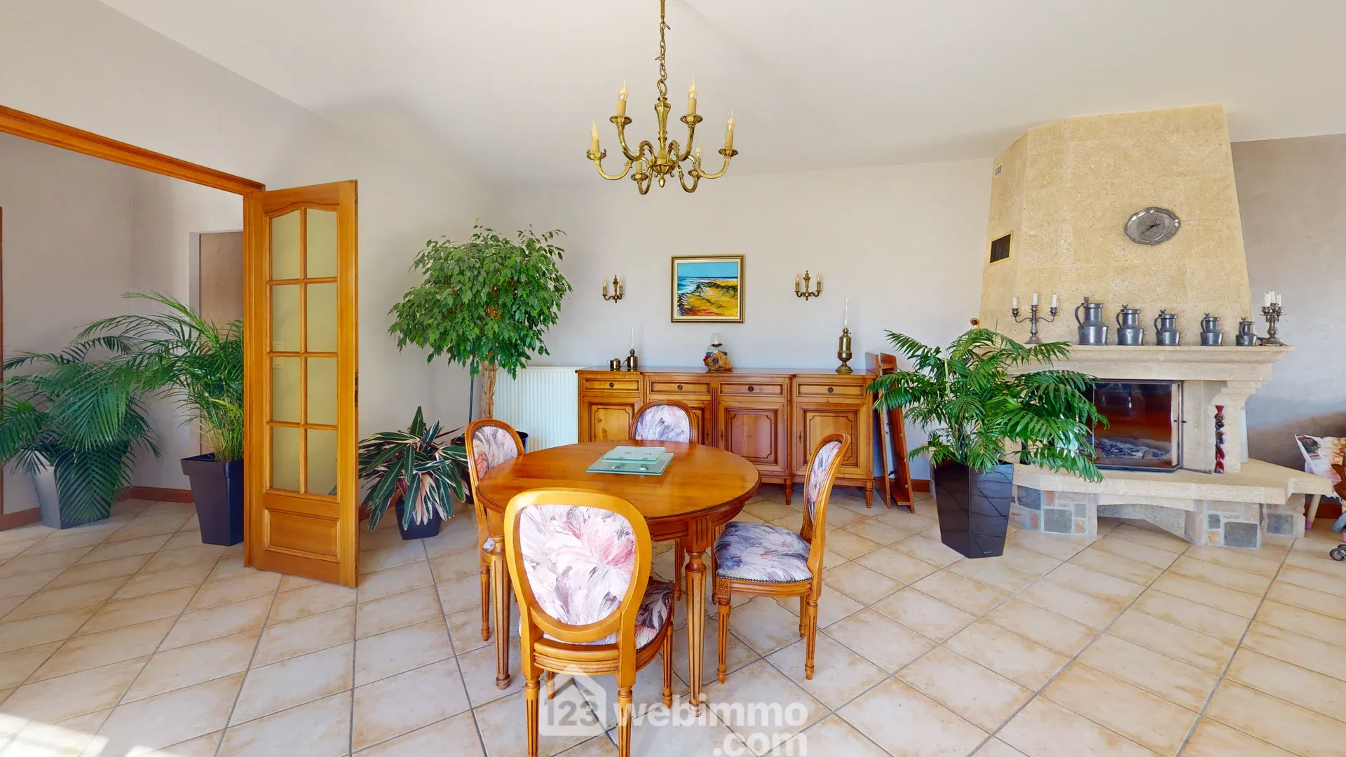 Le séjour salle à manger traversant de 48m² est bordé en extérieur de deux belles terrasses orientées ouest et sud. La cheminée à insert pourra animée vos soirées d'hiver. On accède ensuite à l'espace nuit de la suite parentale. Cette aile ouest de la villa comprend : un bureau, une chambre de 15m², un dressing, un toilette, une salle de bain avec douche et placard.