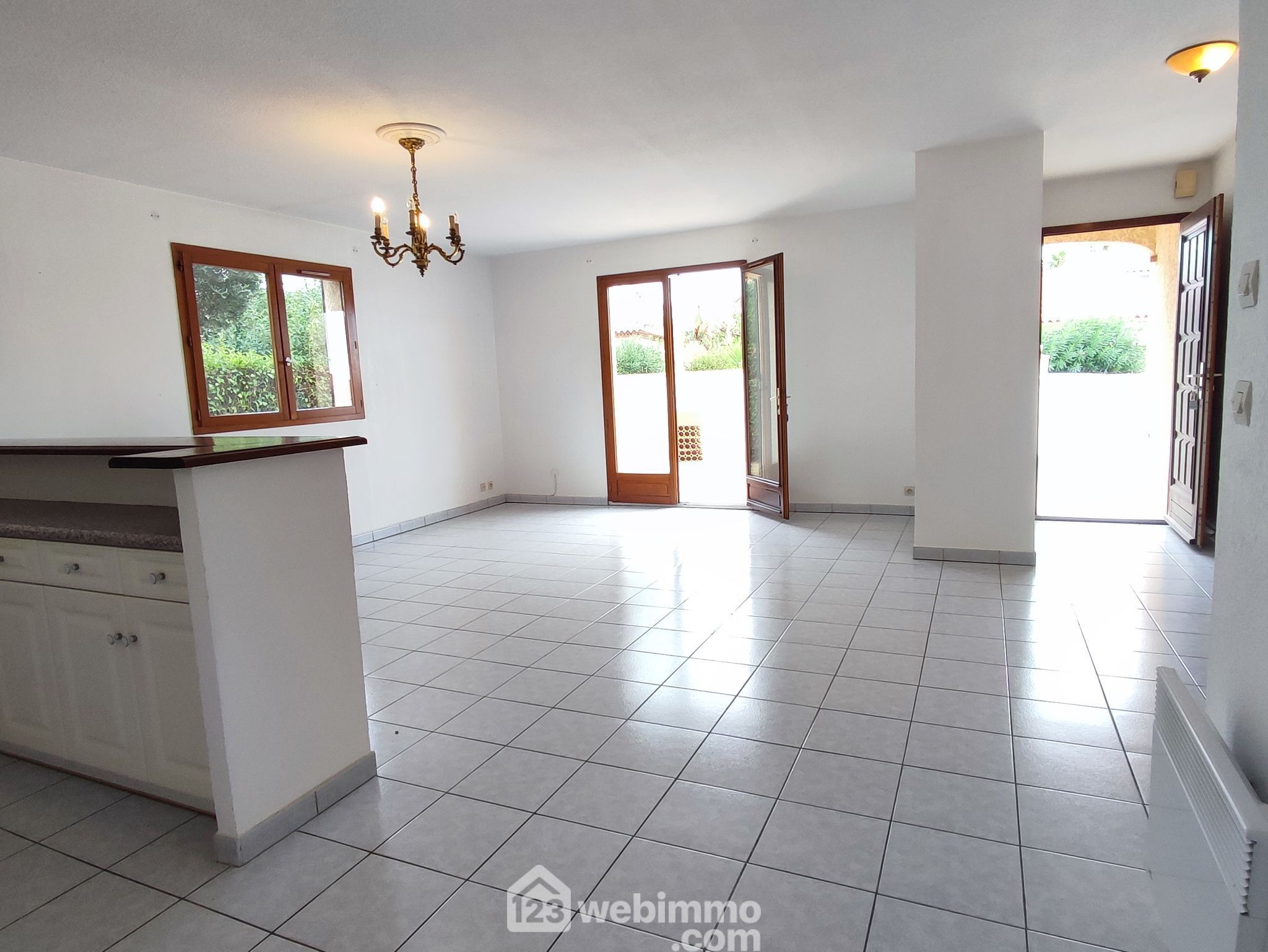 Piece de vie avec cuisine ouverte aménagée le tout donnant sur une terrasse , 3 chambres dont 2 avec penderie , 1 salle d'eau et 1 wc indépendant.