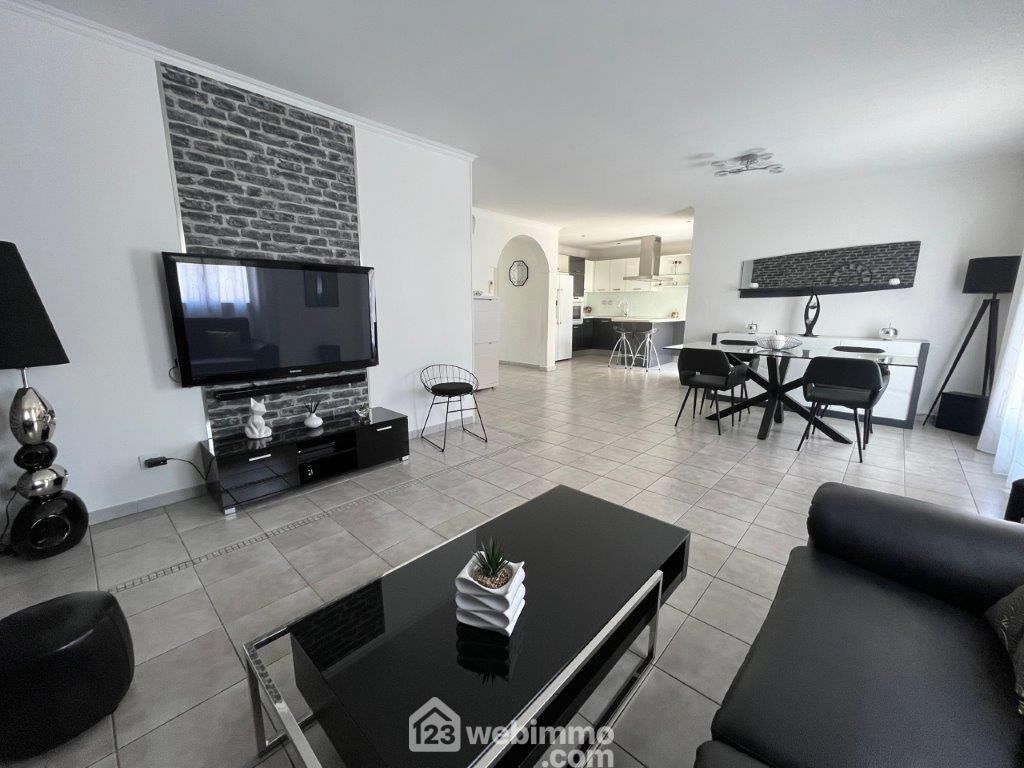 Cette maison est composée, d’une hall d’entrée, d’une grande cuisine américaine de 12m² ouverte sur un grand séjour salon de 27m², de 3 grandes chambres ou 2 chambres 1 bureau, d’un cellier extérieur de 11 m², d’une salle de bain, d’un wc séparé et d’un garage.