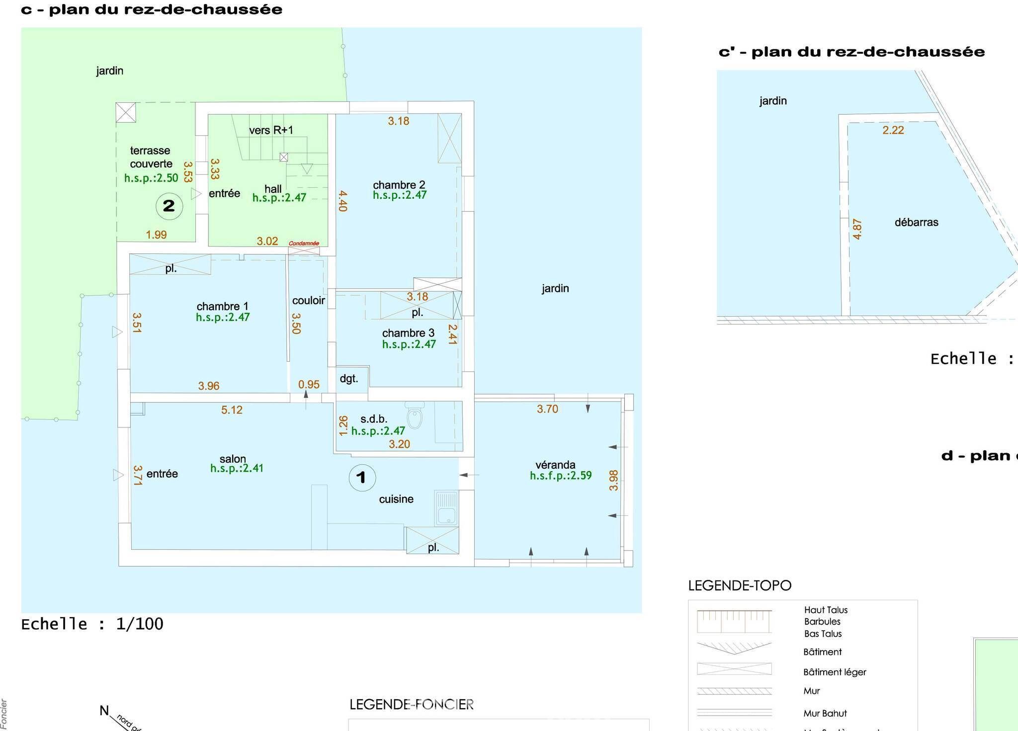 • 2 chambres, 1 bureau, 1 salle d’eau WC, un séjour cuisine et une véranda vue sur le jardin, un abris jardin de 15,64m²