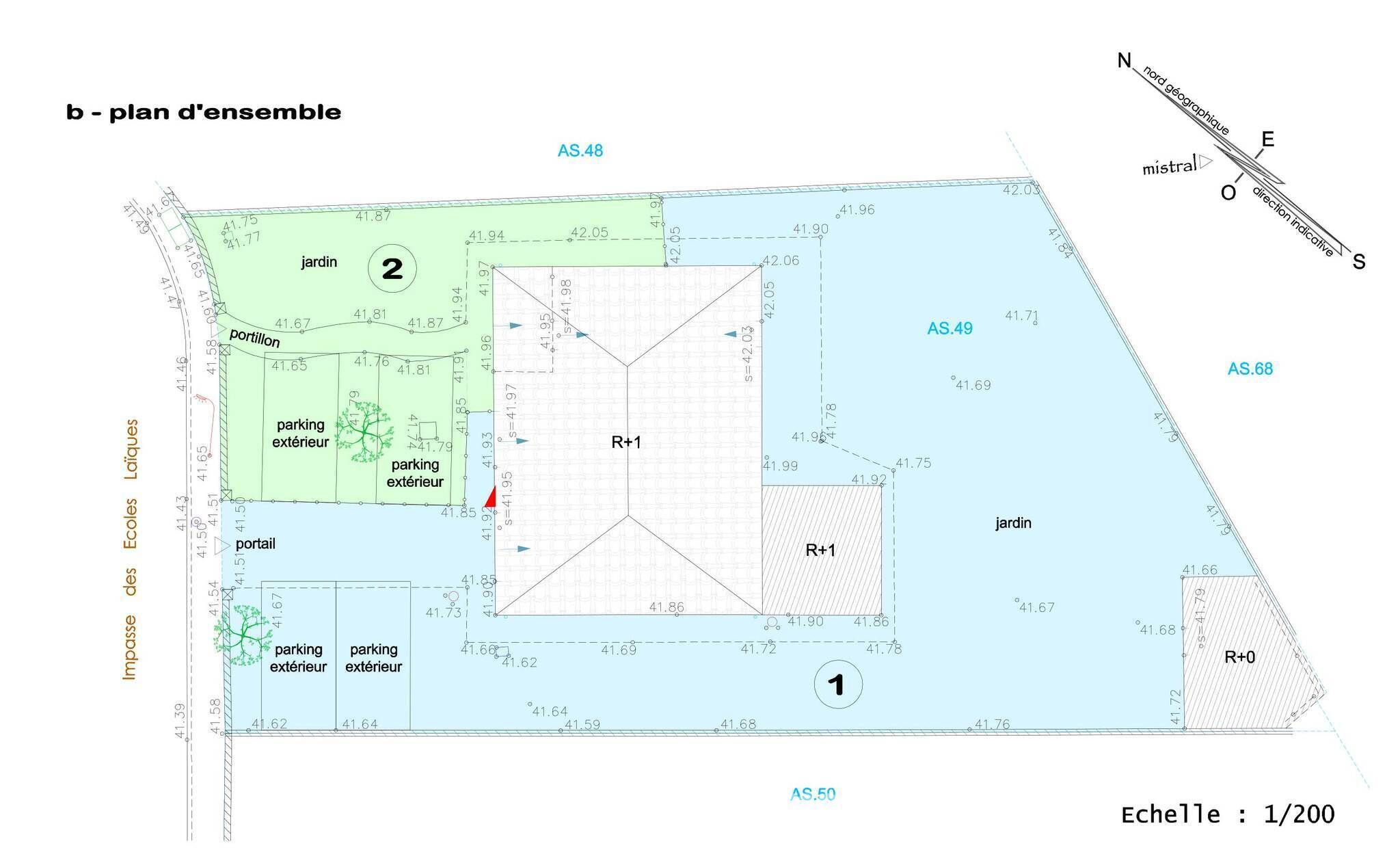 Le RDC d'une villa d'une surface de 84m² au Cœur du Village de Vendargues avec Jardin Piscinable de 345 m² Lot 1 du plan.