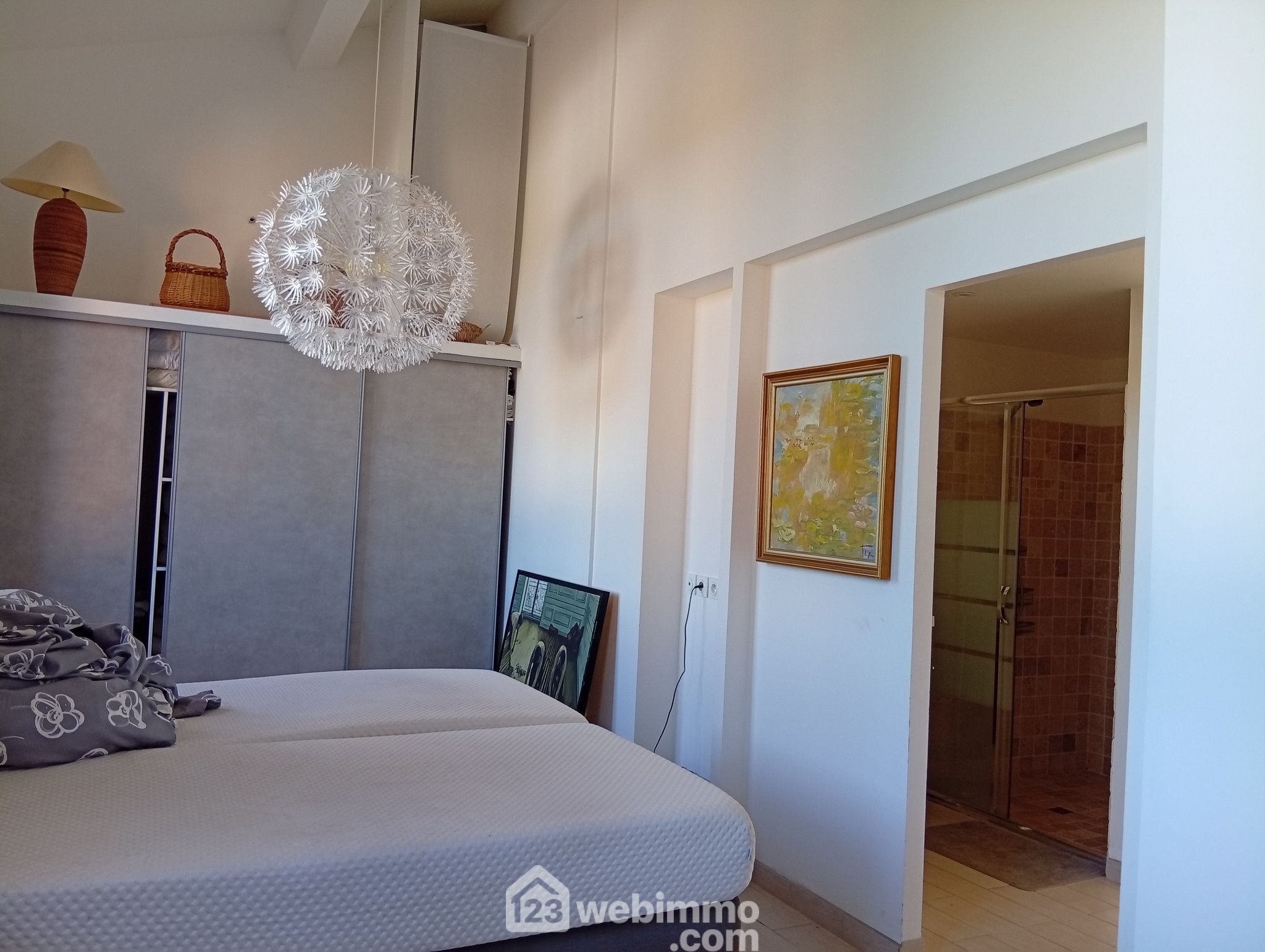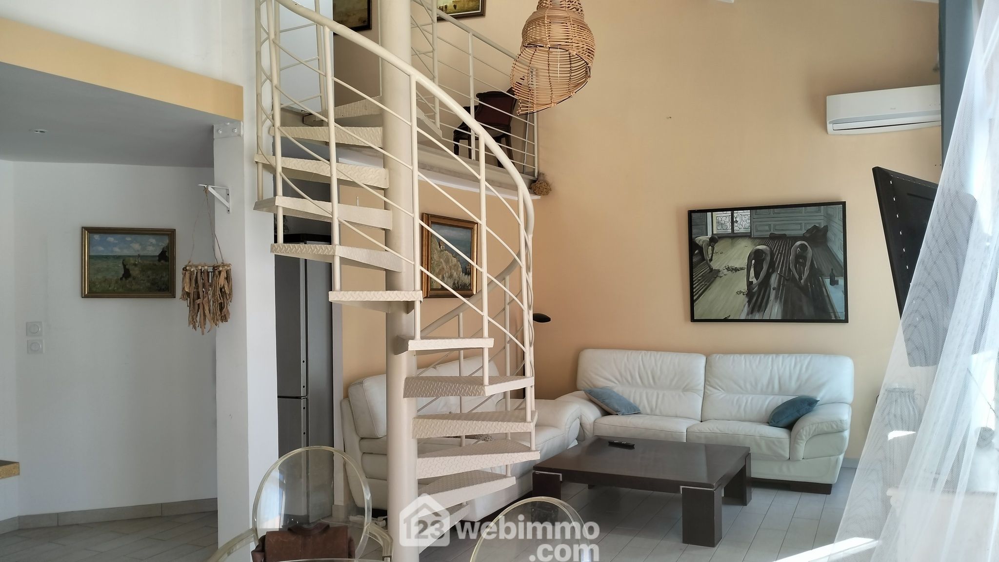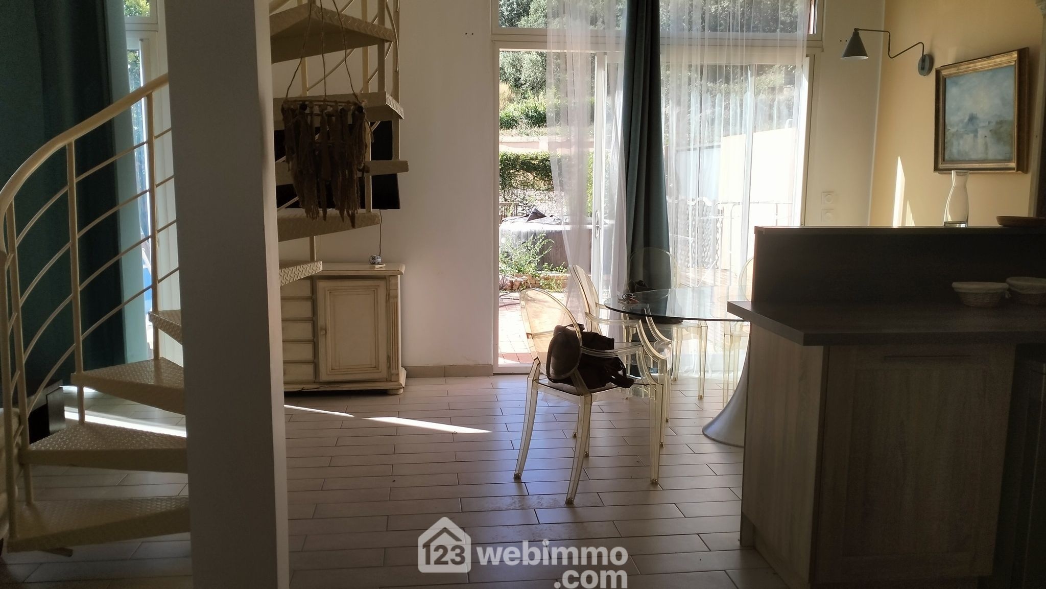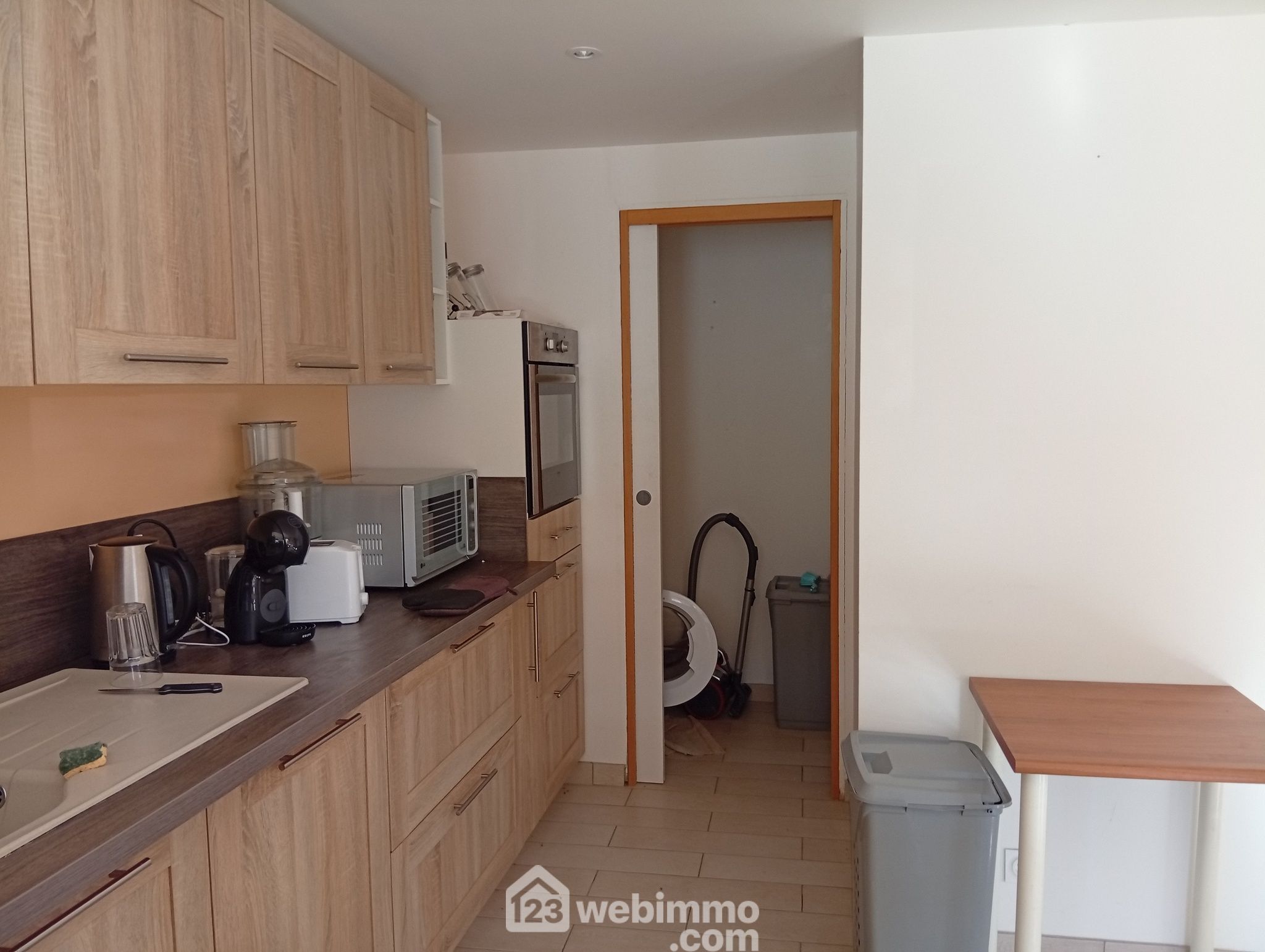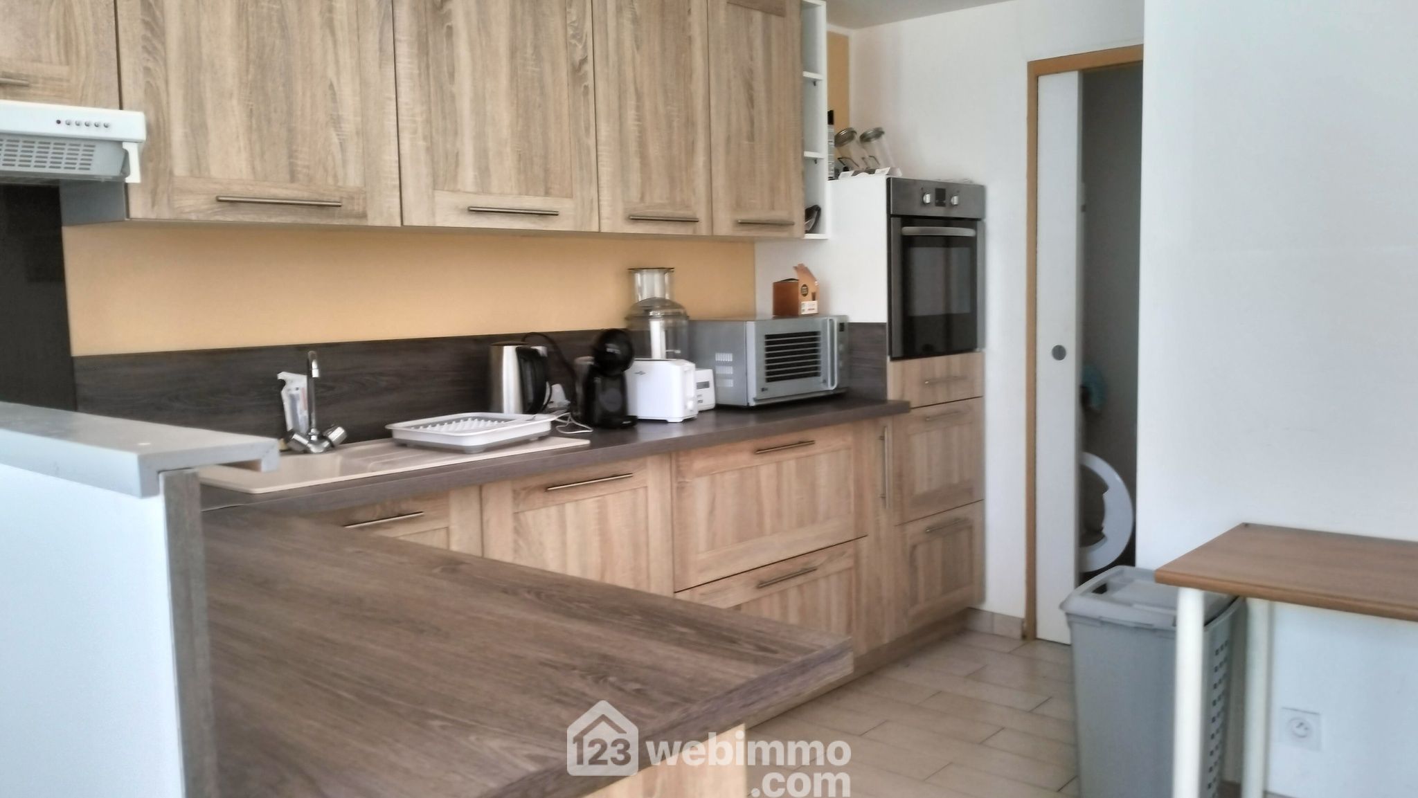 Un spacieux open space avec climatisation. Cuisine toute aménagée et équipée + cellier/buanderie. Un séjour lumineux avec de grandes baies vitrées donnant sur le jardin (clos et plat).