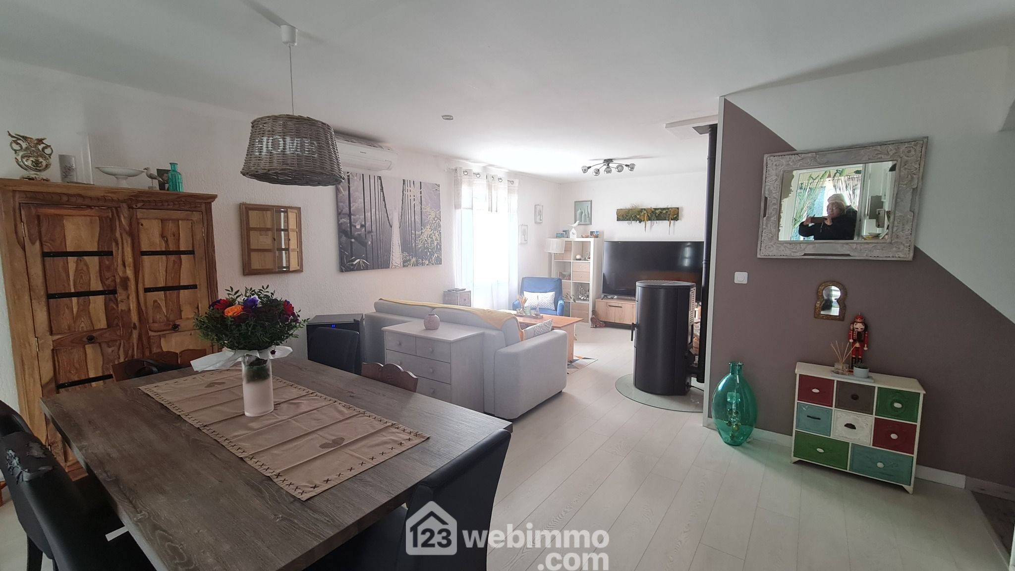 Offrant une entrée dans un open space lumineux et chaleureux. Pièce de vie de 32m² avec clim et poêle, cuisine toute aménagée et ouverte - équipement neufs et de qualité (10m²). 3 chambres de belles tailles dont une suite parentale avec salle d'eau et dressing. Une salle d'eau avec vraie douche à l'italienne et wc indépendants.